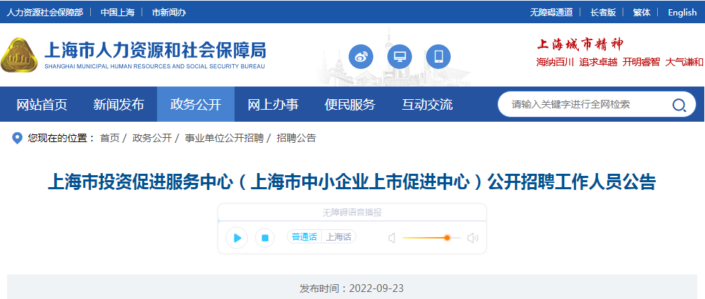 原文标题:上海市投资促进服务中心(上海市中小企业上市促进中心)公开招聘工作人员公告