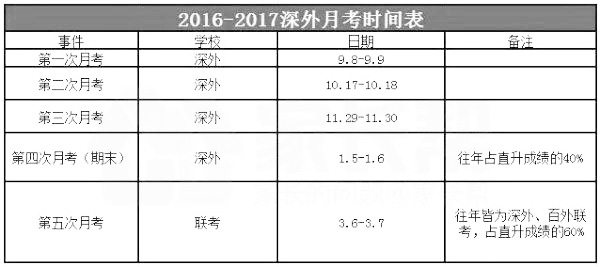 以2017年深外初中本部时间安排为例: