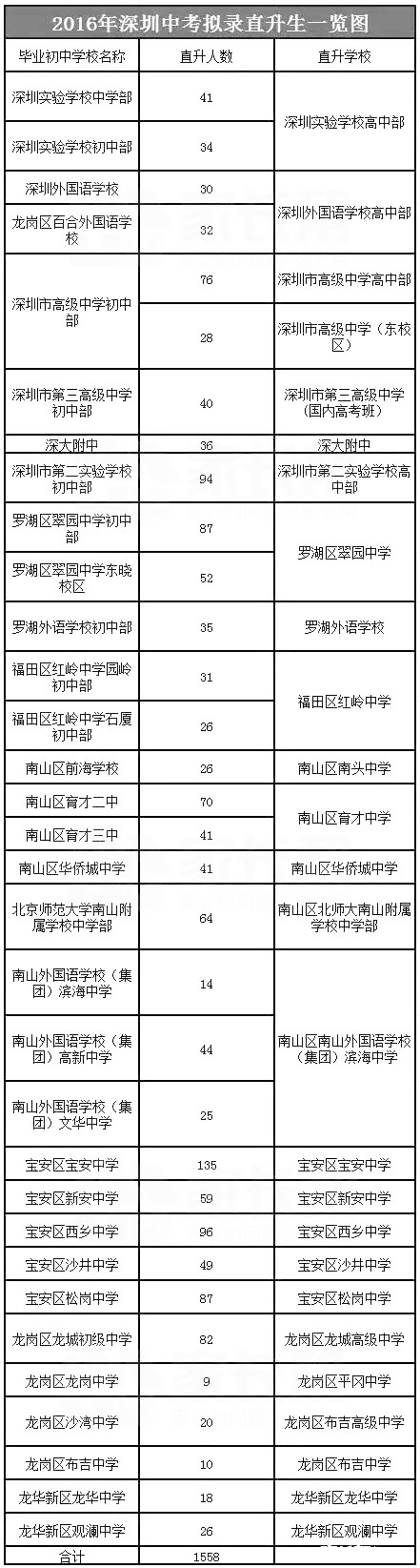 四、2016年深圳中考拟录直升生一览图