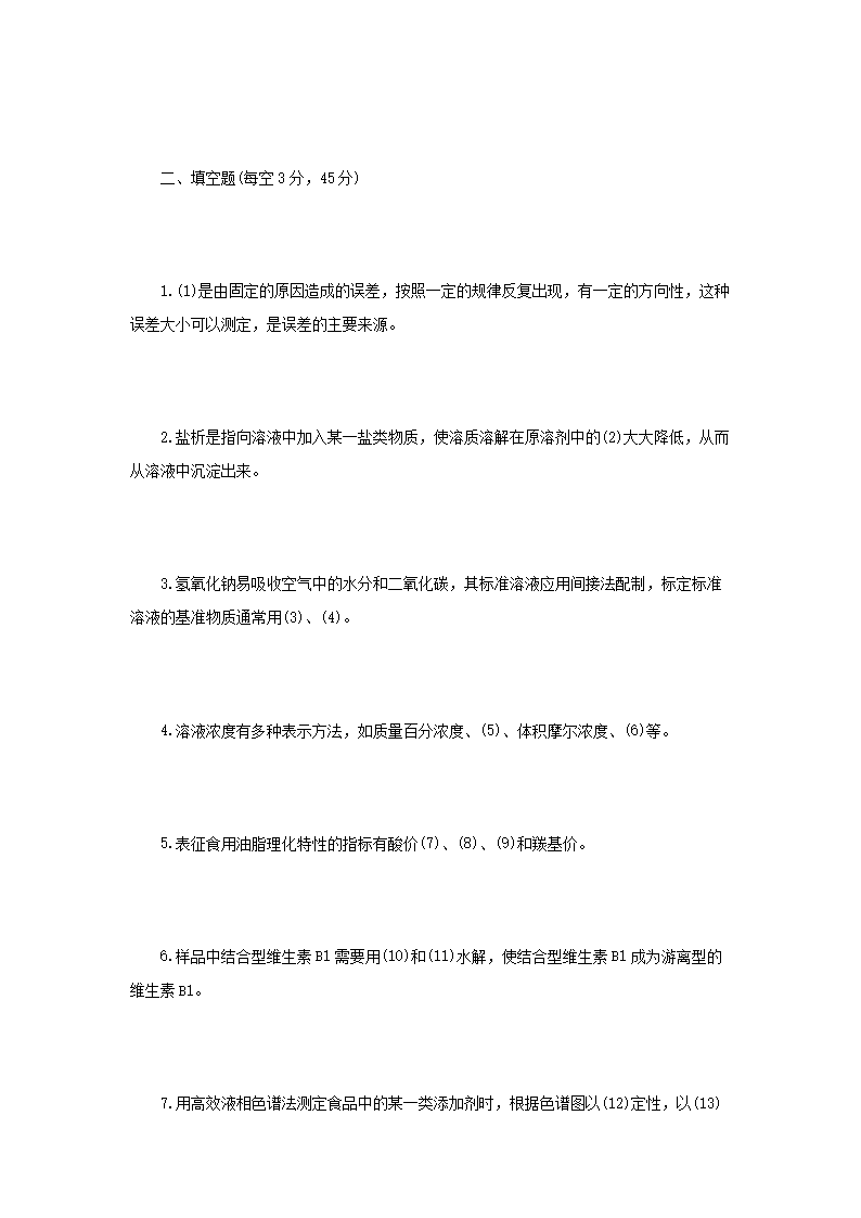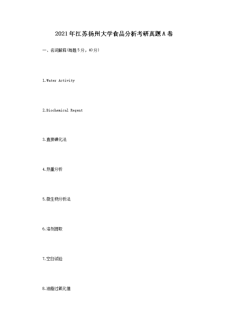 2021年江苏扬州大学食品分析考研真题A卷(Word版)08-31