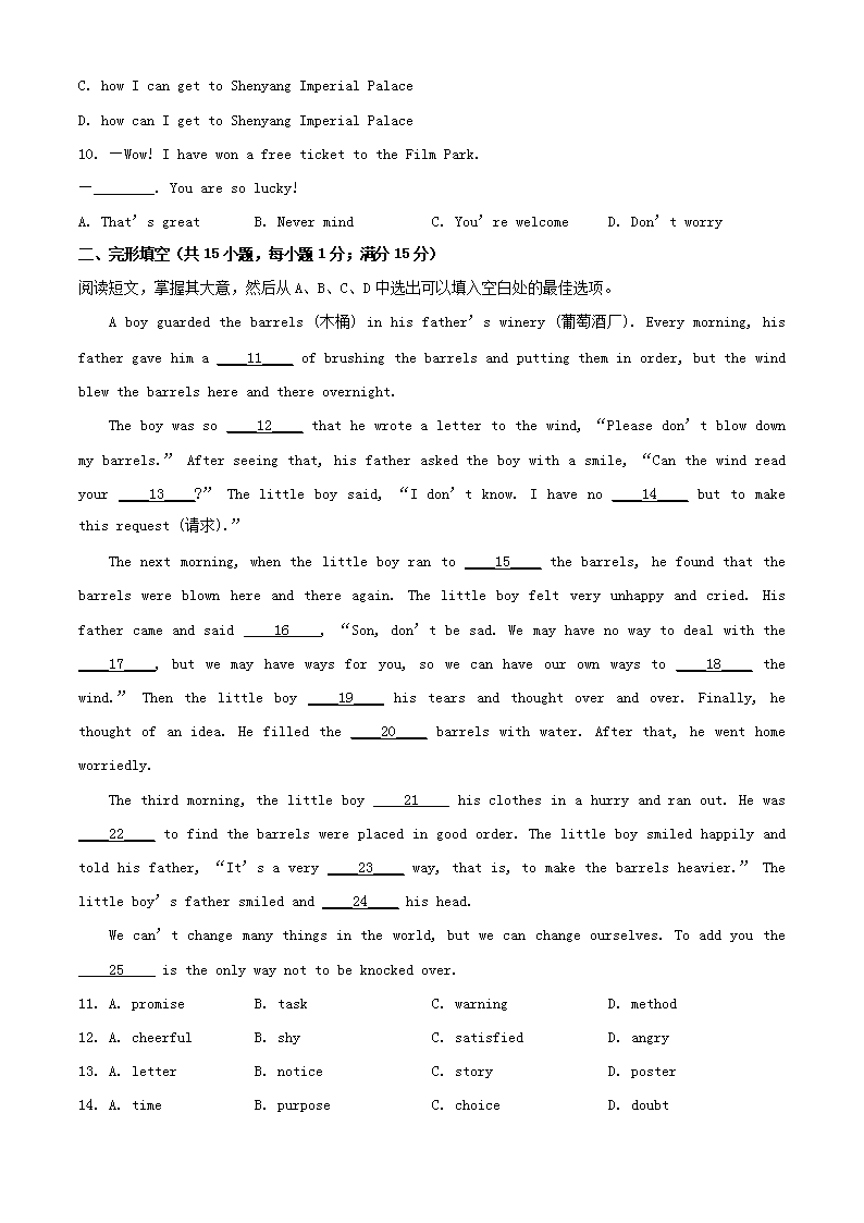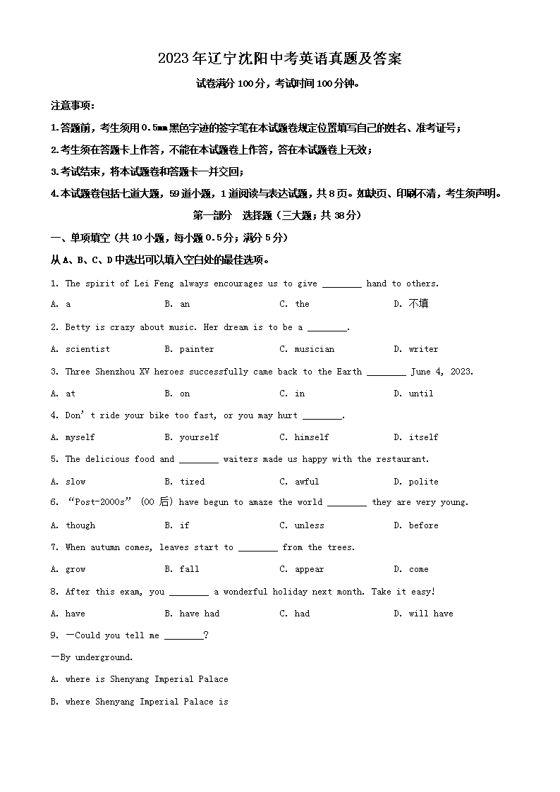 【文档预览】 文档大全网整理发布2023年辽宁沈阳中考英语真题及答案(Word版),前五页预览如下: