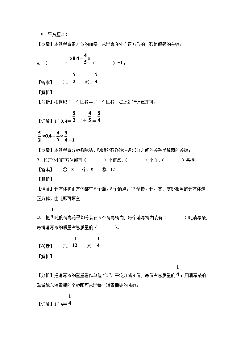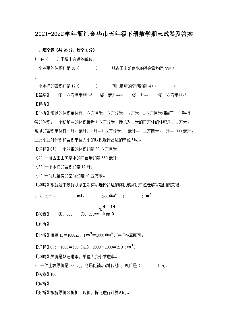 2021-2022学年浙江金华市五年级下册数学期末试卷及答案(Word版)09-26