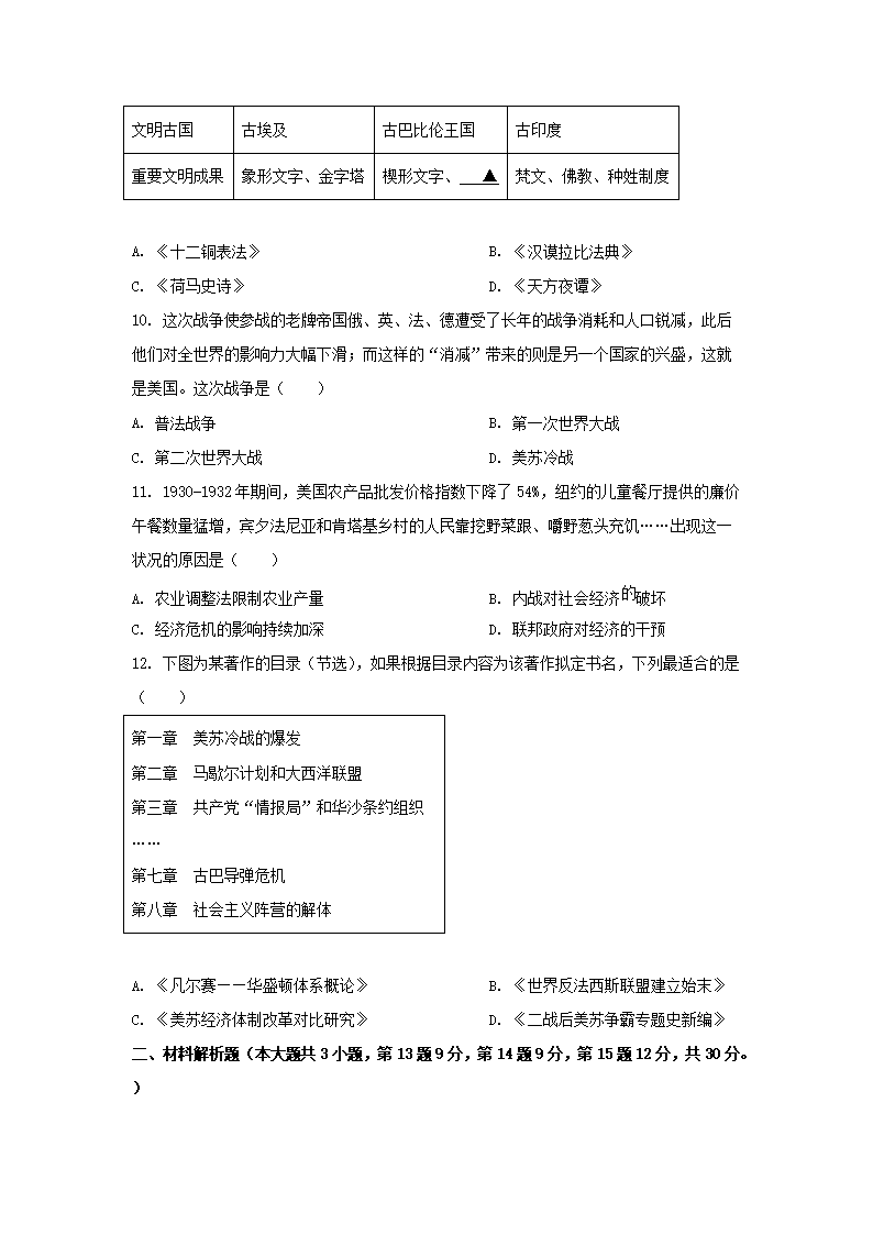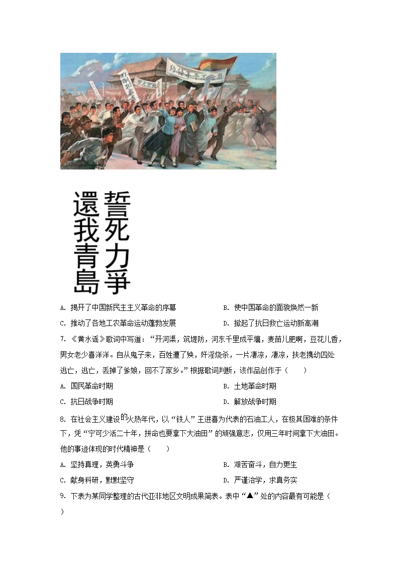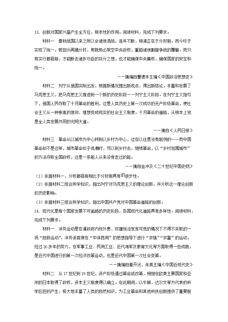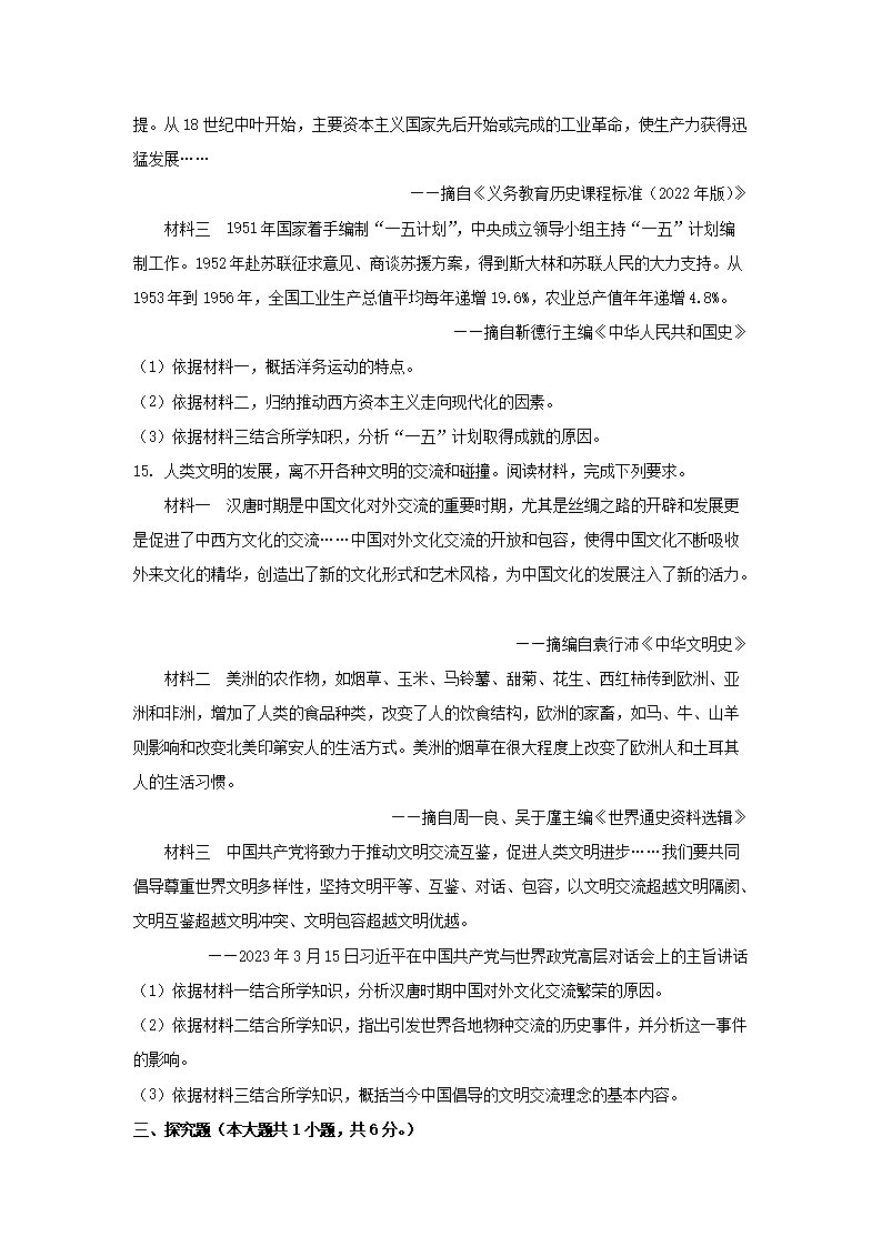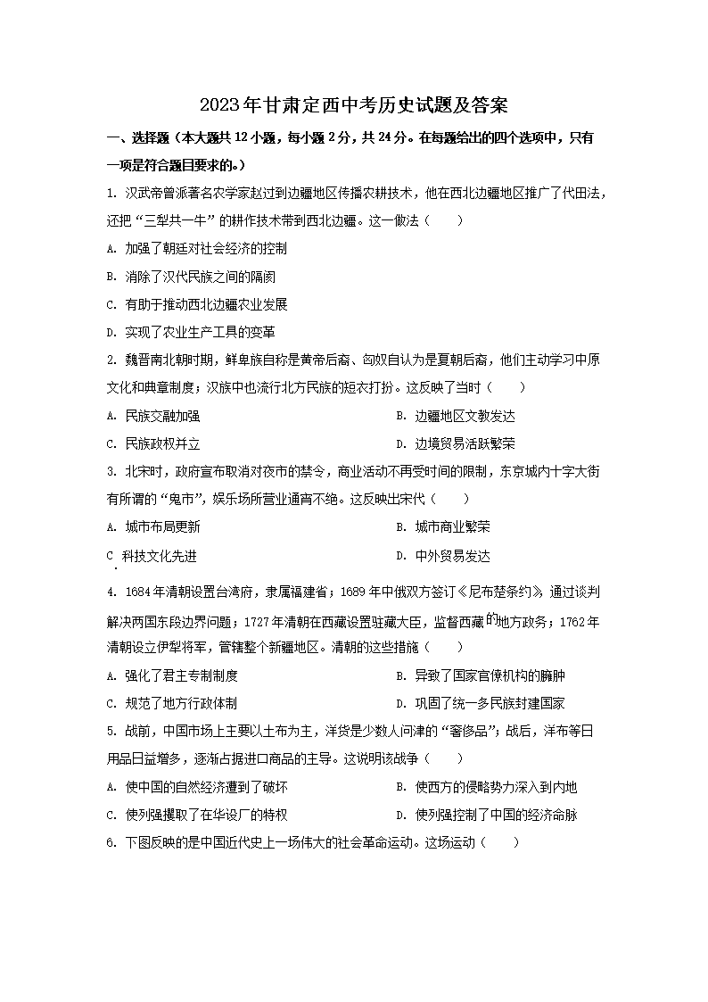 2023年甘肃定西中考历史试题及答案(Word版)07-26