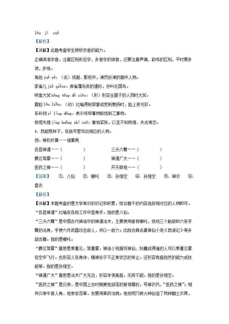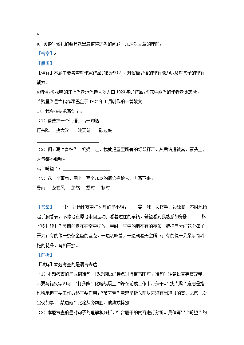 2021-2022学年浙江省金华市婺城区四年级上学期期末语文真题及答案(Word版)09-29