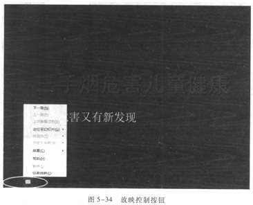 除通过右击调出放映控制菜单外,也可以通过屏幕左下角的控制按钮实现放映控制菜单的全部功能,如图5-34所示。左箭头、右箭头按钮相当于放映控制菜单的“上一张”或“下一张”功能。笔状按钮相当于放映控制菜单的“指针选项”功能。幻灯片状按钮的功能包括放映控制菜单除“指针选项”外的所有功能。