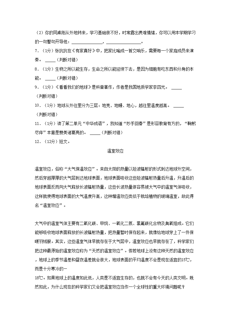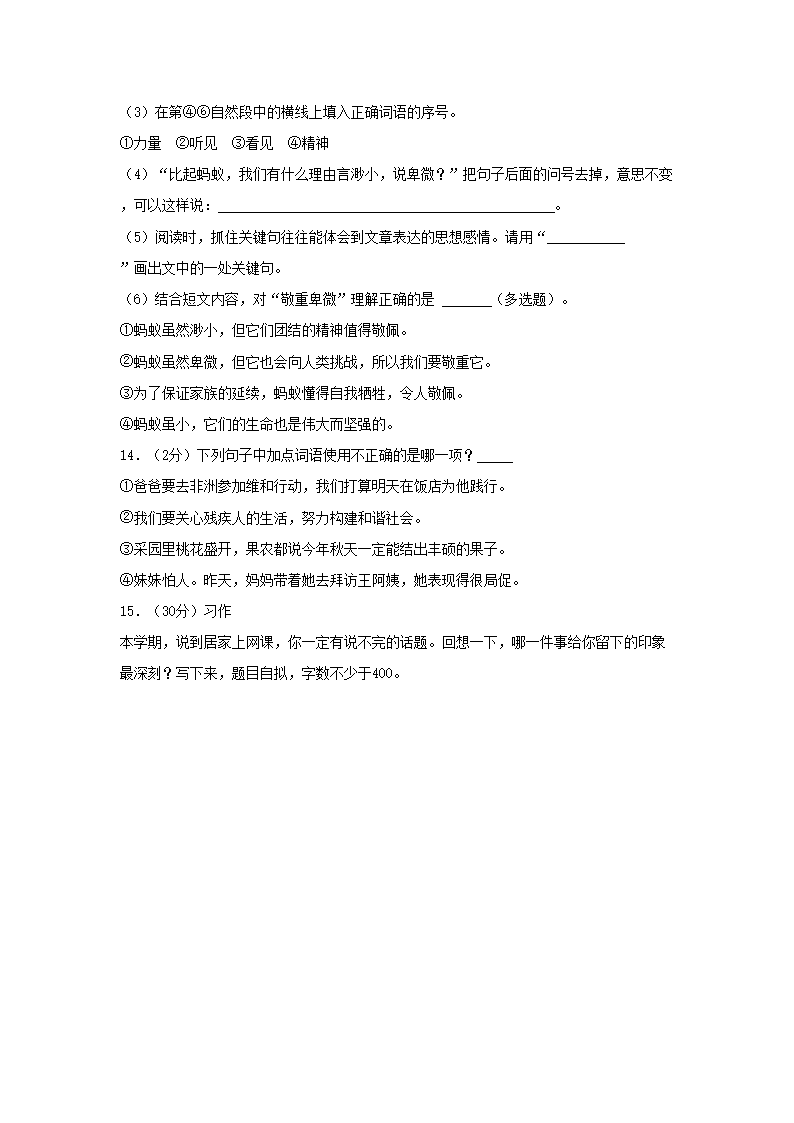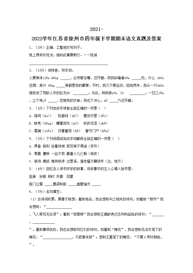 2021-2022学年江苏省徐州市四年级下学期期末语文真题及答案(Word版)09-20