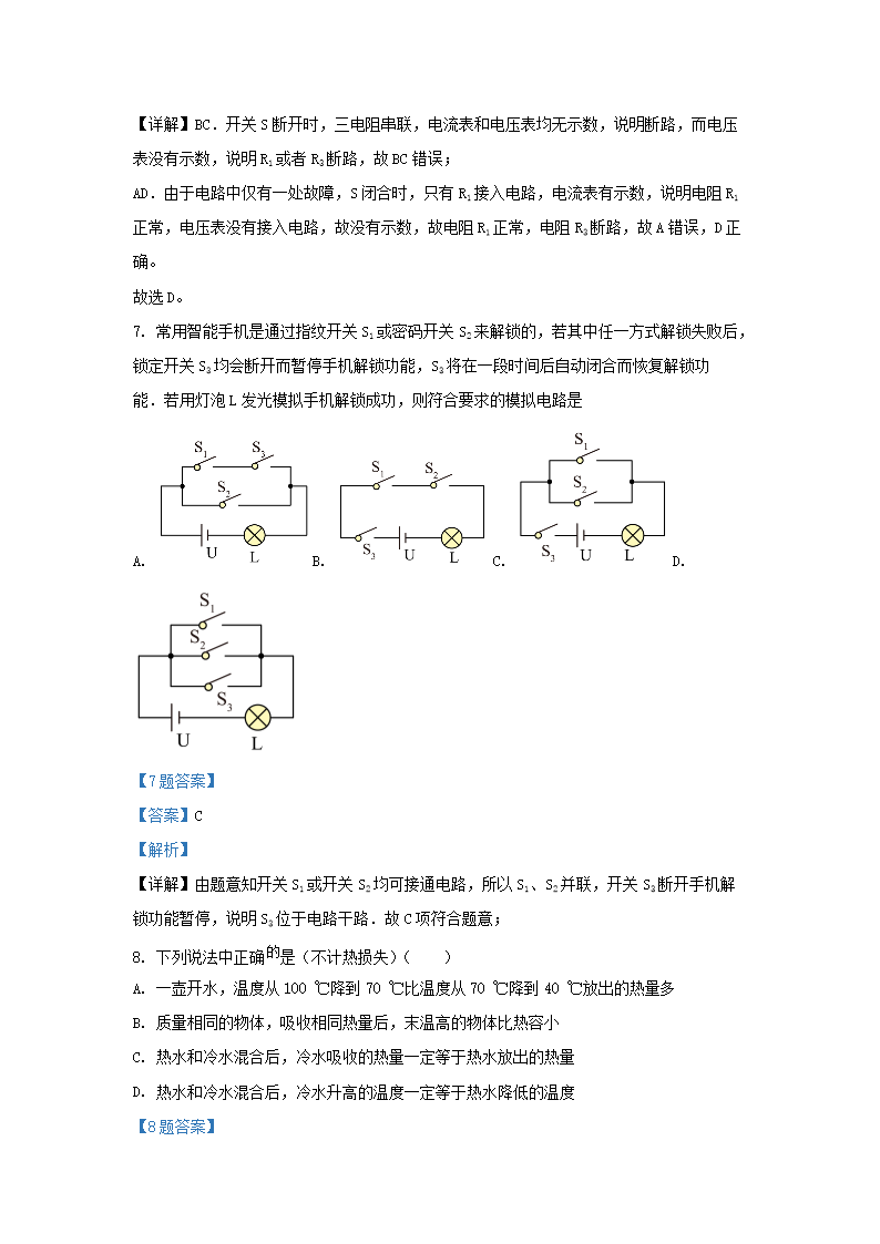 2021-2022学年江苏省扬州市邗江区九年级上学期物理期末考试题及答案(Word版)10-11
