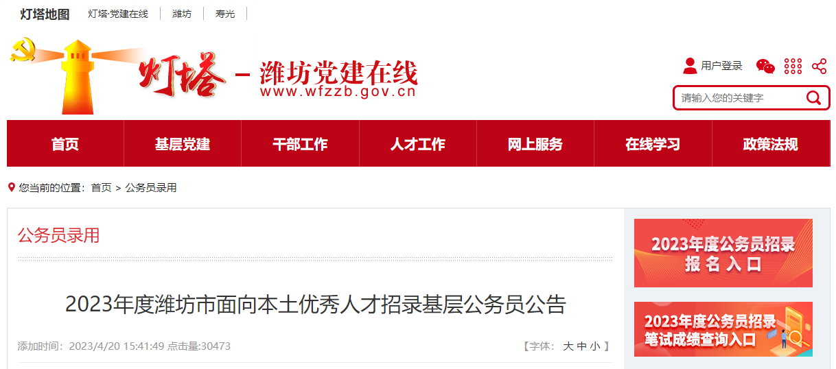 原文标题:2023年度潍坊市面向本土优秀人才招录基层公务员公告