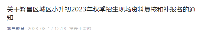 安徽芜湖繁昌区城区小升初2023年秋季招生现场资料复核和补报名通知08-15