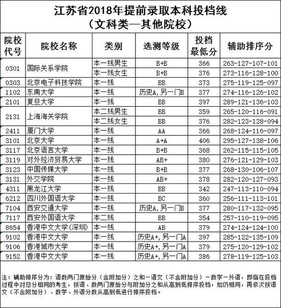 附:江苏省提前录取本科投档线(来源:江苏省教育考试院)