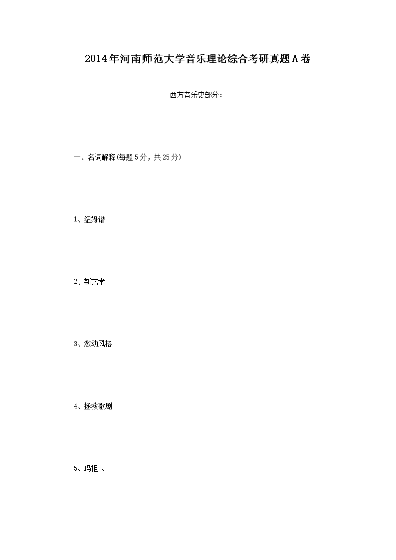 2014年河南师范大学音乐理论综合考研真题A卷(Word版)06-09