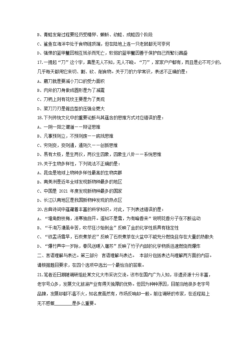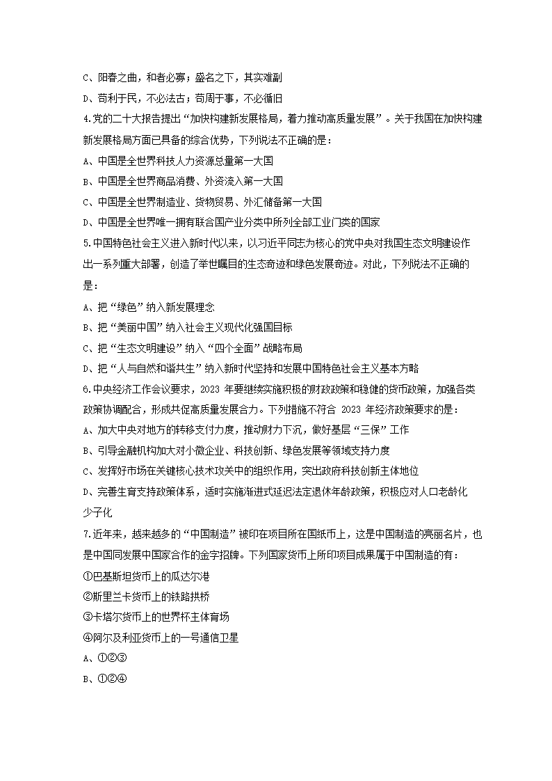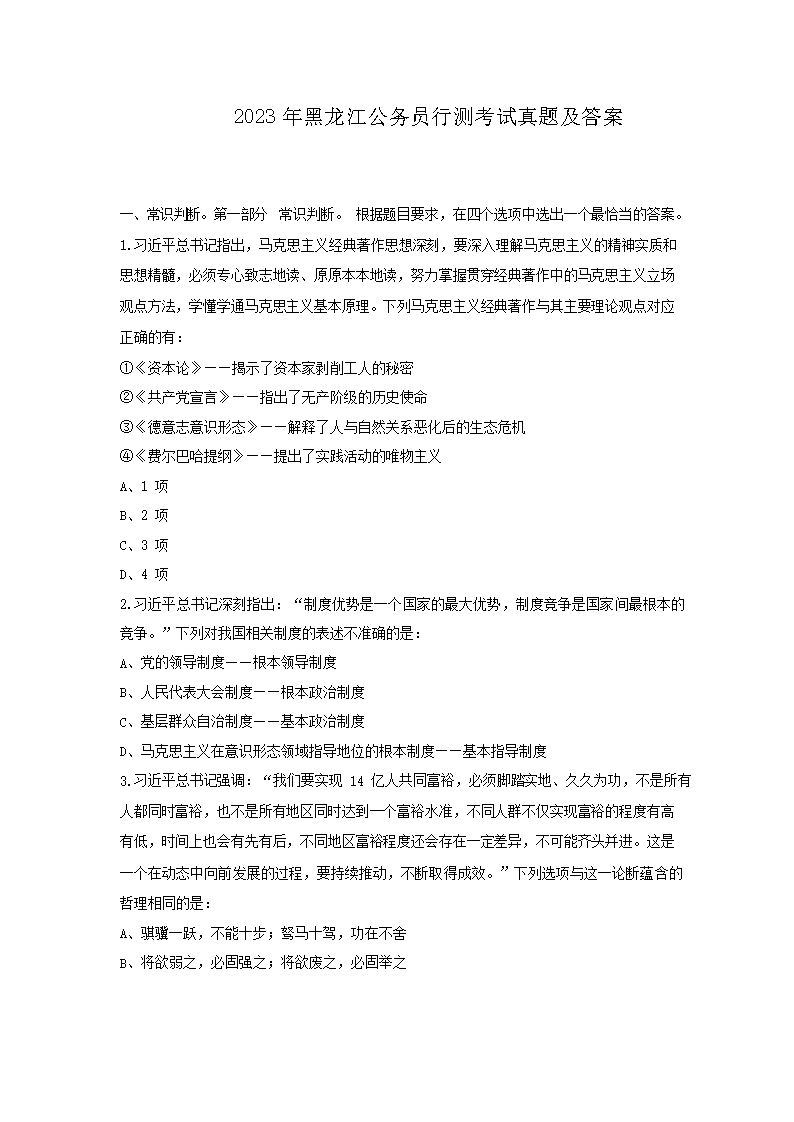 2023年黑龙江公务员行测考试真题及答案(Word版)09-28