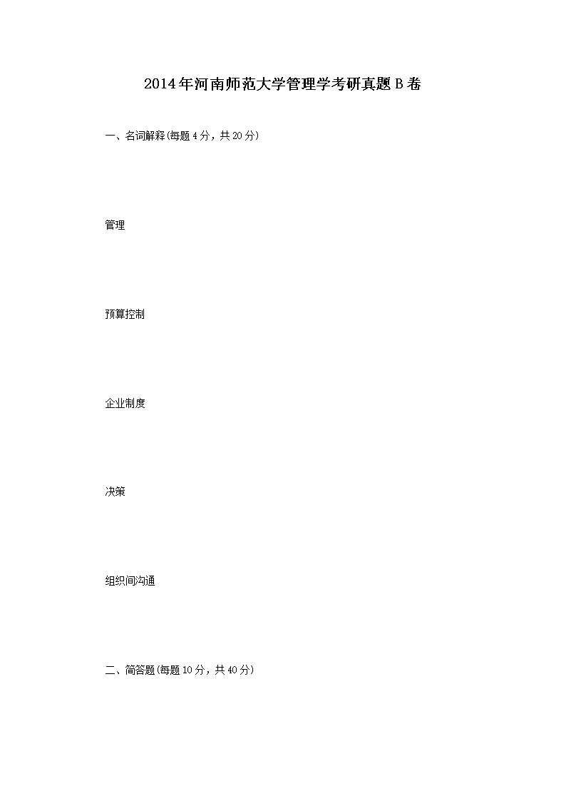 2014年河南师范大学管理学考研真题B卷(Word版)06-06