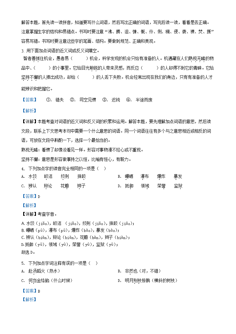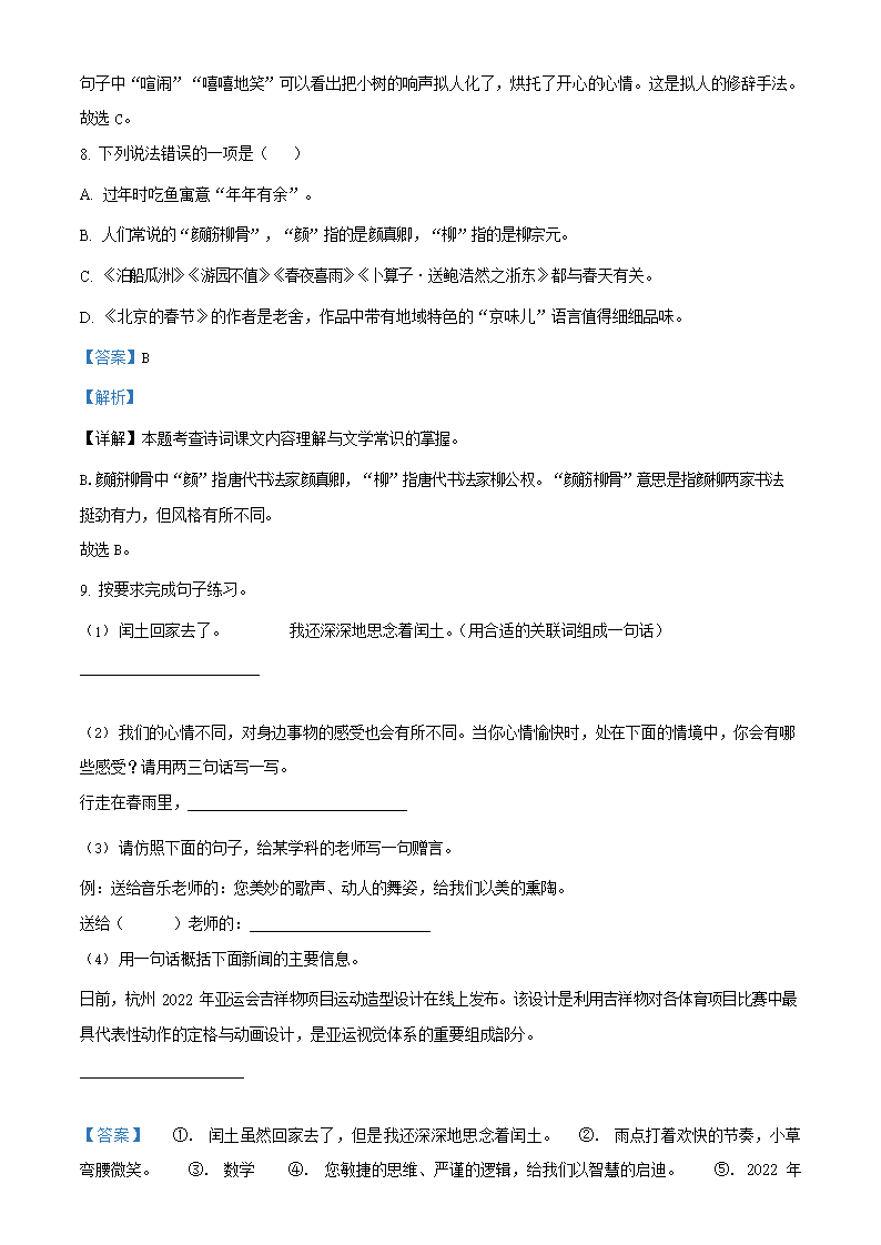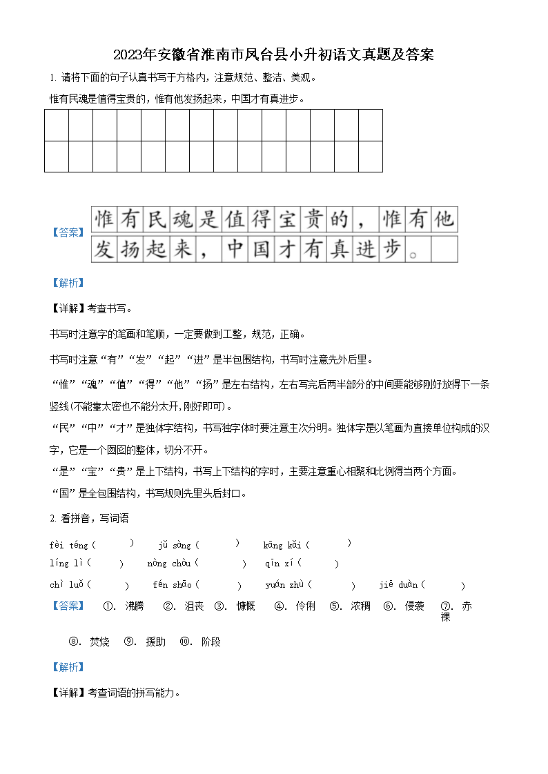 2023年安徽省淮南市凤台县小升初语文真题及答案(Word版)09-27