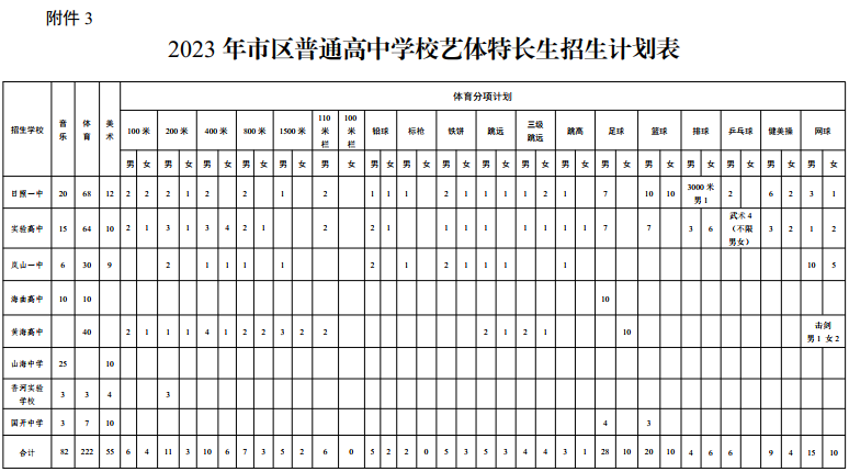 1.艺体特长生。根据《山东省教育厅关于普通中小学招生入学工作的指导意见》(鲁教基发〔2015〕4号)规定,艺体特长生招生比例控制在学校年度招生计划的5%以内。市区高中艺体特长生招生计划详见附件3。