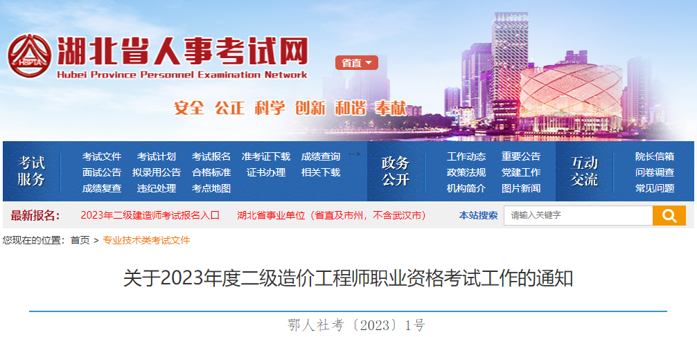 【#造价师考试# 导语】®文档大全网从湖北省人事考试网获悉,2023年湖北二级造价工程师报考工作现已开始,报名时间:3月6日-13日,考试时间:5月27日,更多事宜请参考阅读《考务通知》,官方公告原文如下: