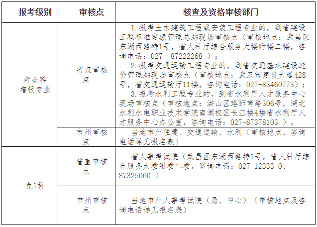 各地住建、交通、水利行业主管部门负责对报本行业“考全科”或“增报专业”的报考人员进行资格审核,各地人社部门负责对报考“免1科”的报考人员进行资格审核。