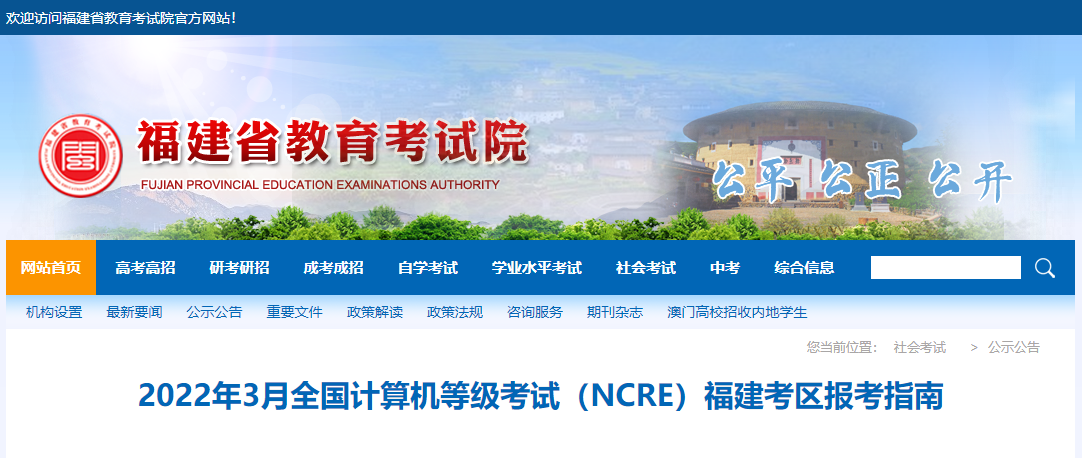 2022年3月福建计算机等级考试时间:3月26日-28日12-03