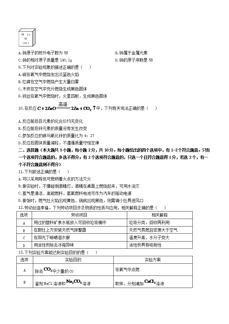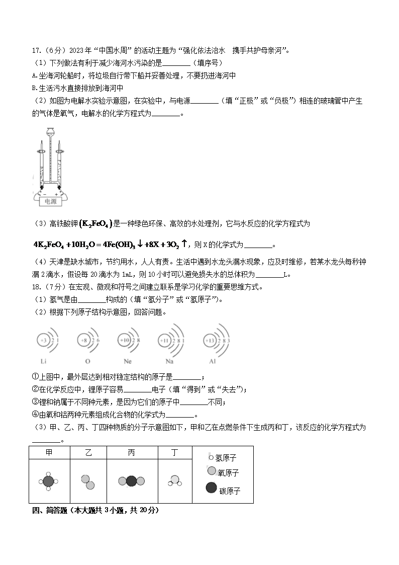 2023年天津中考化学试题及答案(Word版)06-22