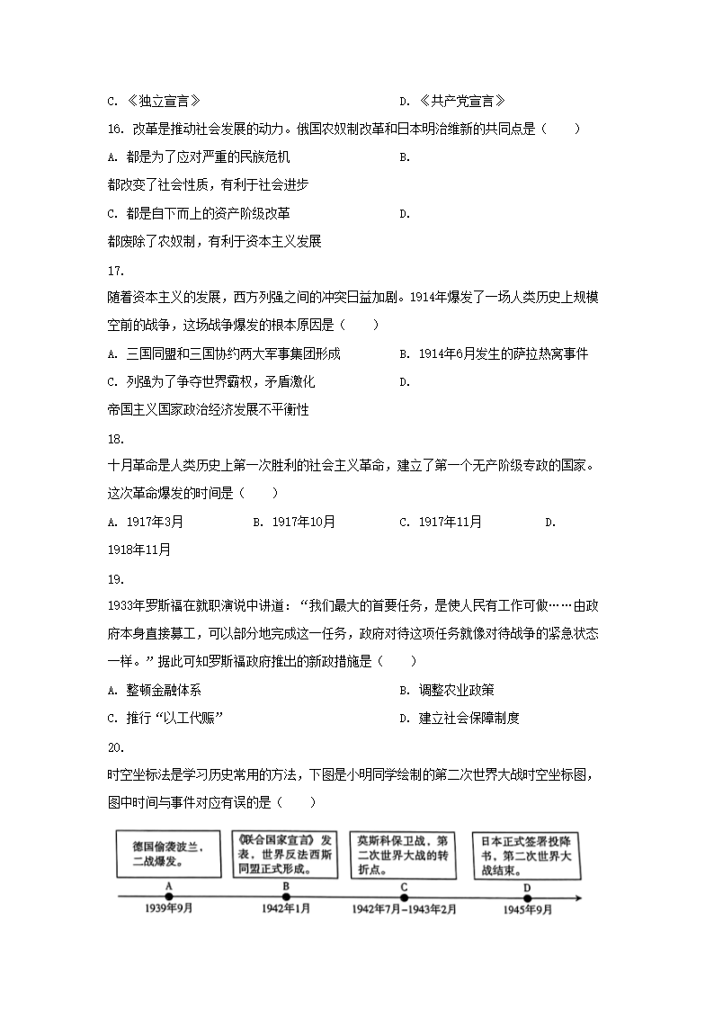 2023年湖南怀化中考历史真题及答案(Word版)06-20