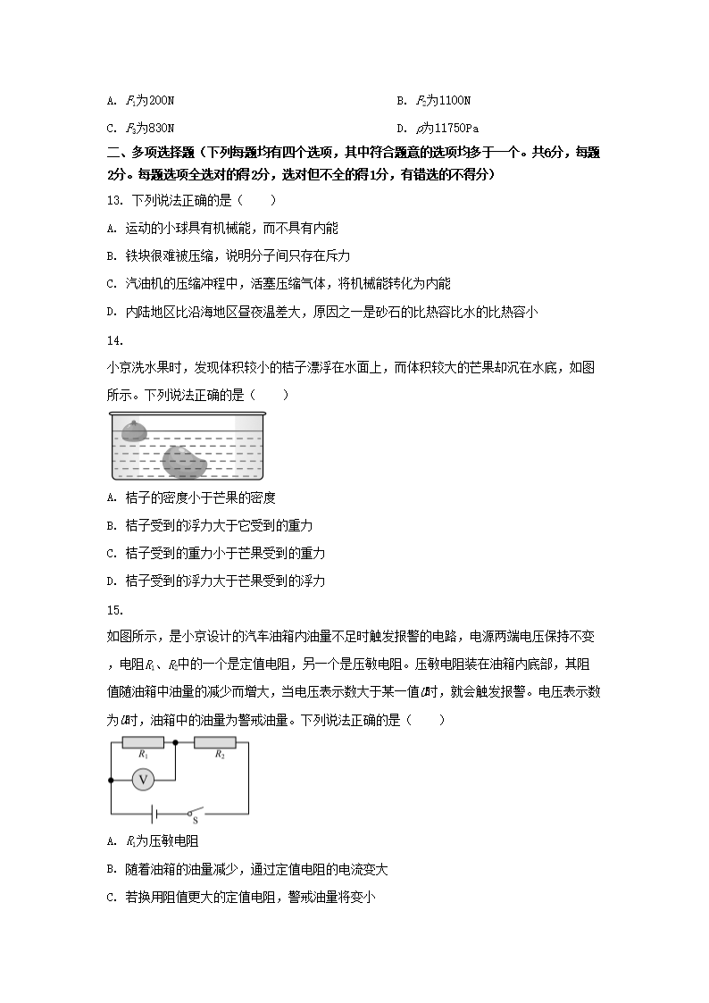 2023年北京丰台中考物理真题及答案(Word版)07-11