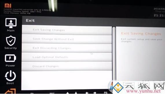 2、选择好之后,在exit选项卡选择第一项,“保存设置并退出”,如下图所示: