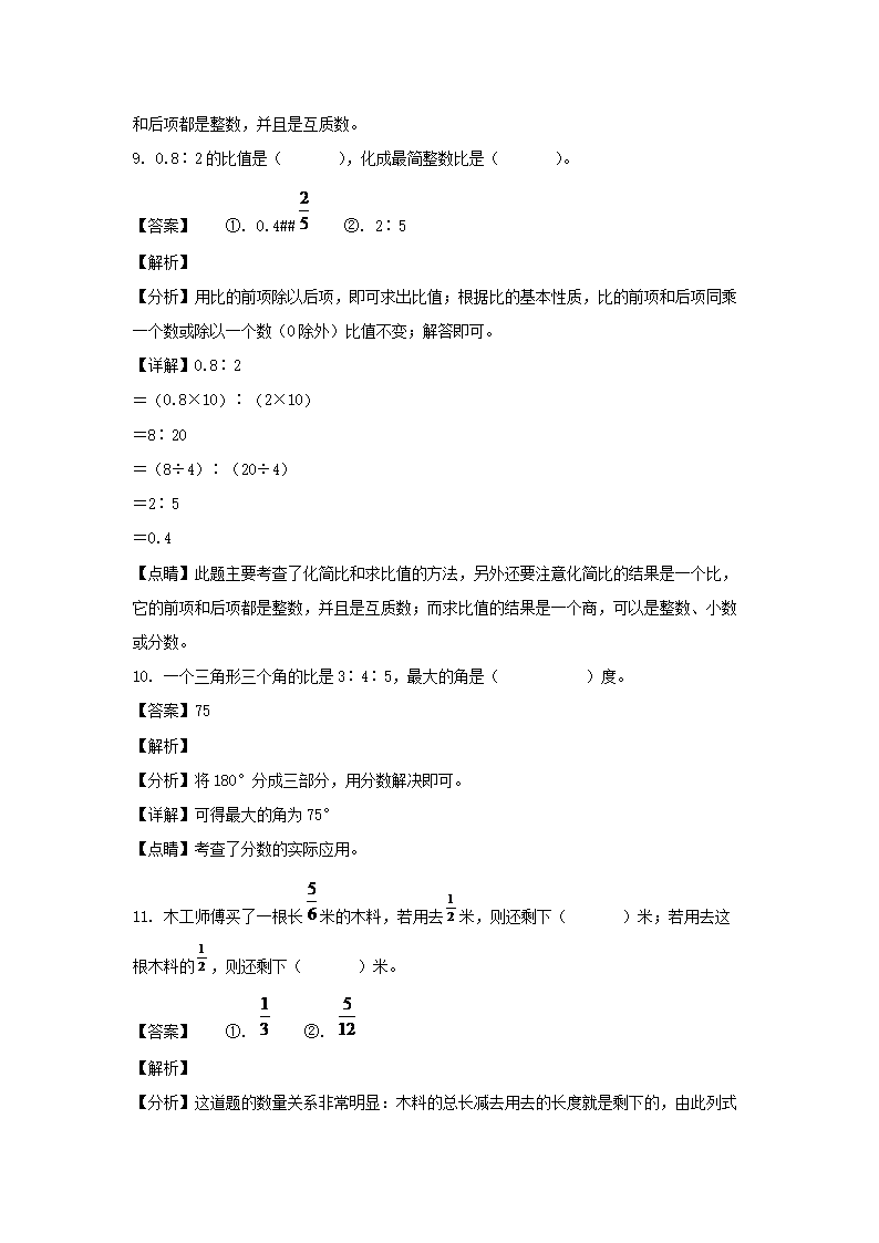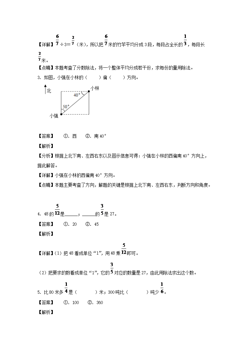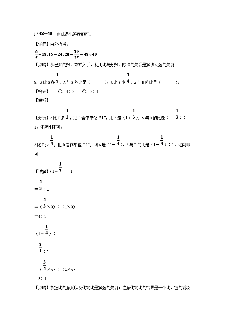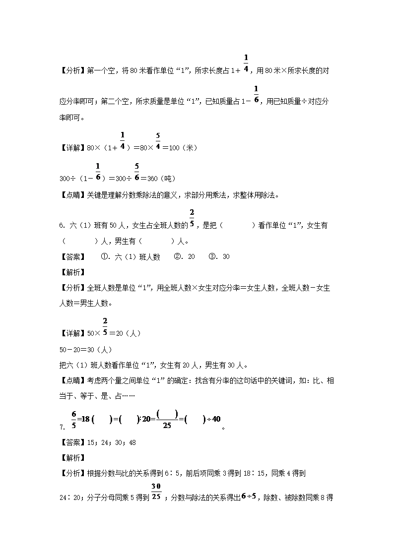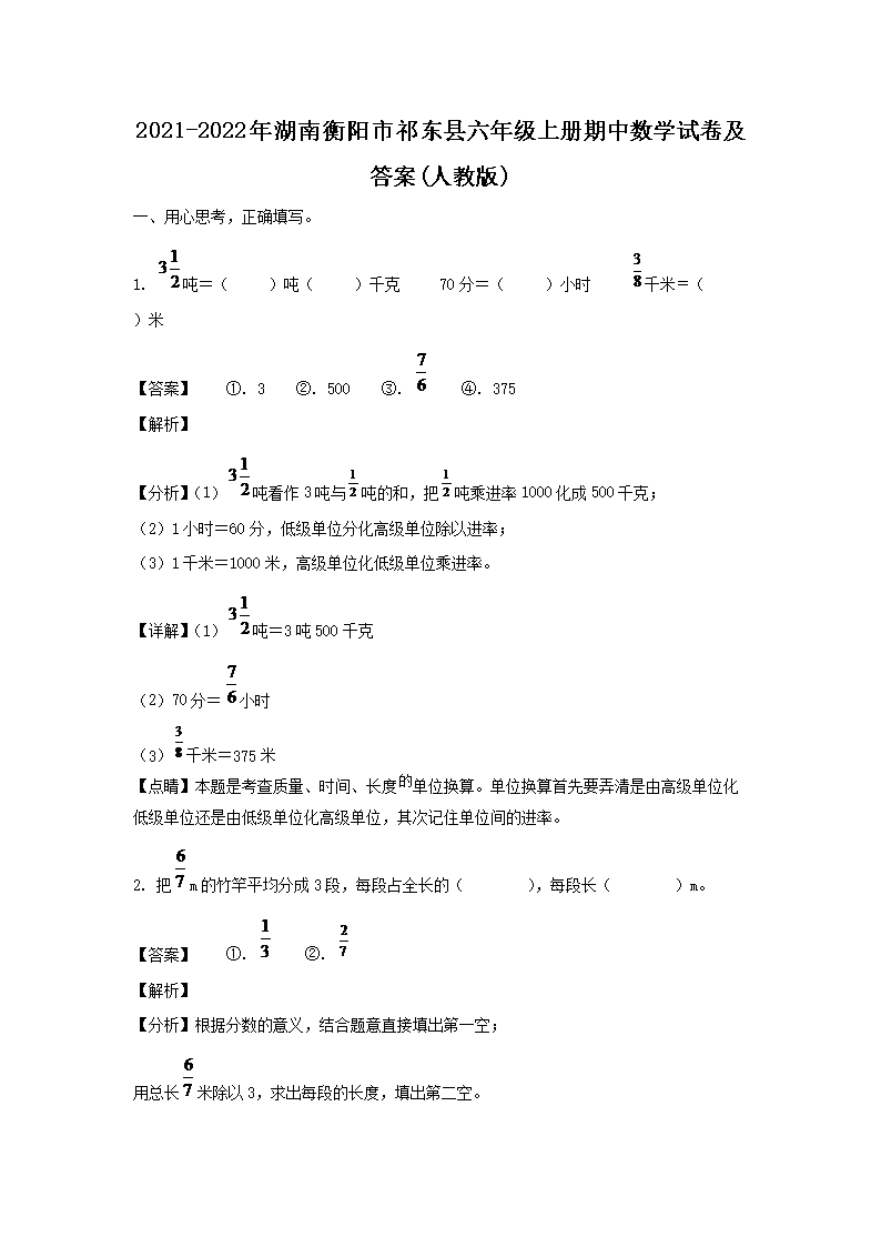 2021-2022年湖南衡阳市祁东县六年级上册期中数学试卷及答案(人教版)(Word版)10-09