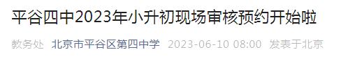 北京市平谷四中2023年小升初现场审核预约时间6月12日至6月16日06-14