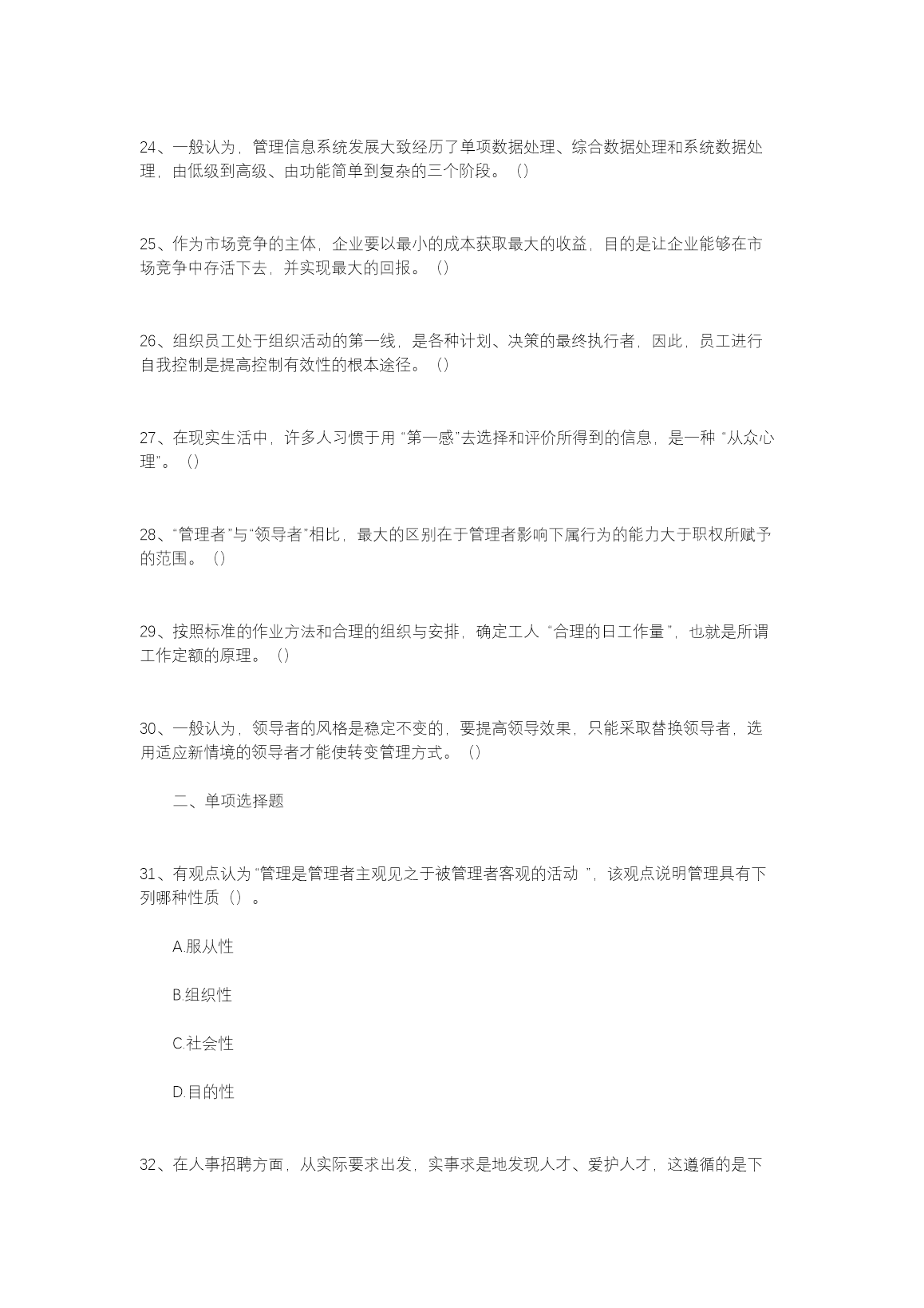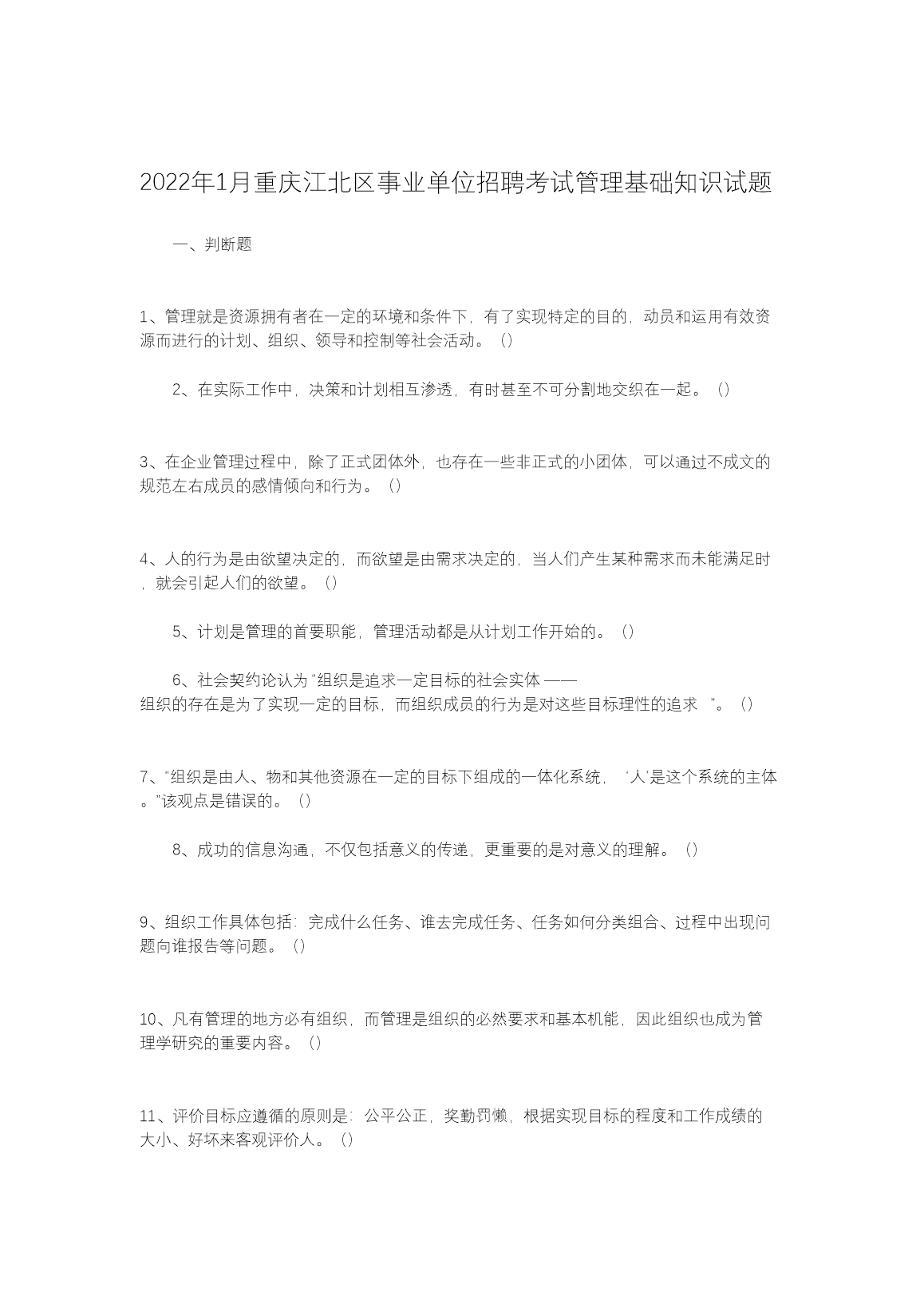 2022年1月重庆江北区事业单位招聘考试管理基础知识试题(Word版)10-13