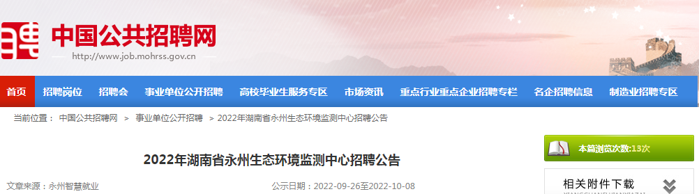 招聘信息通过永州市人事考试网(http://www.8329607.com)、永州智慧就业网(https://www.0746job.com)、永州市生态环境局微信公众号等向社会公开发布。