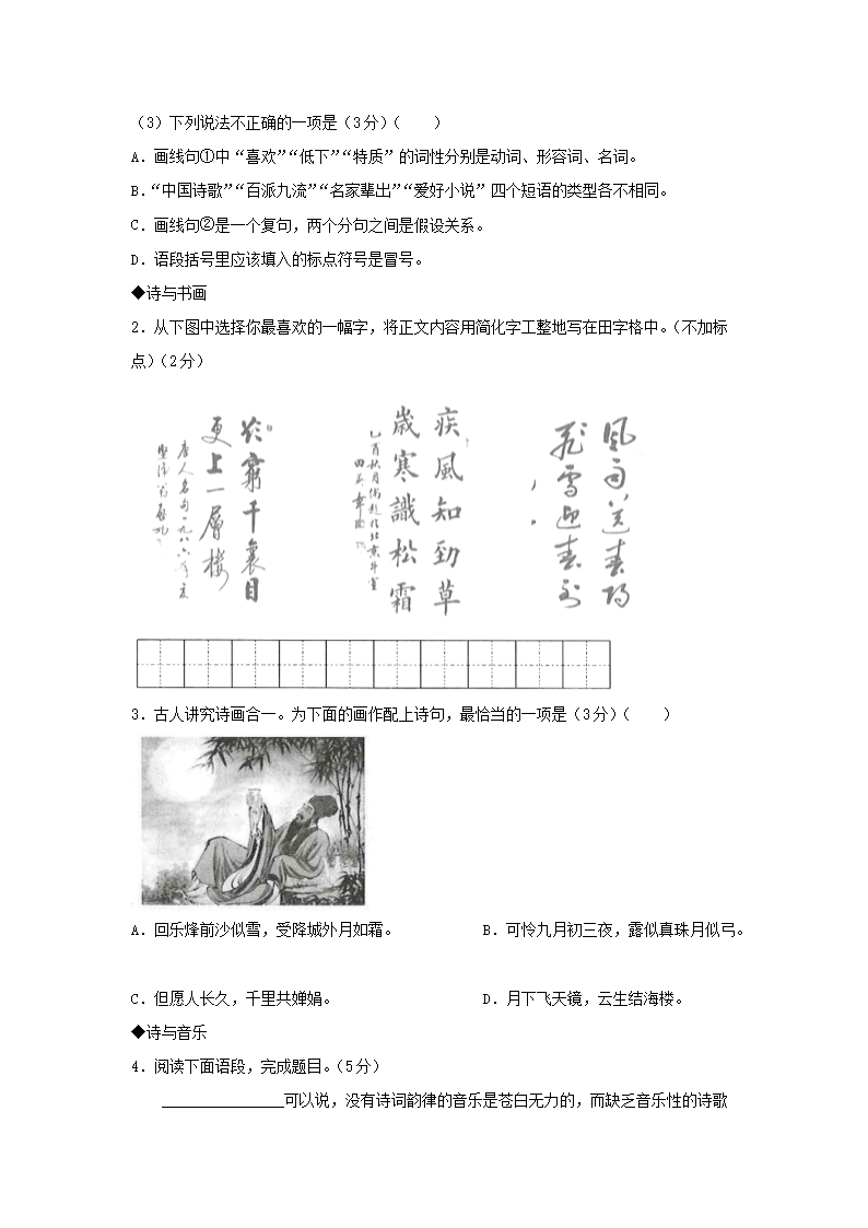 2015年上海黄浦中考语文真题及答案(Word版)07-15