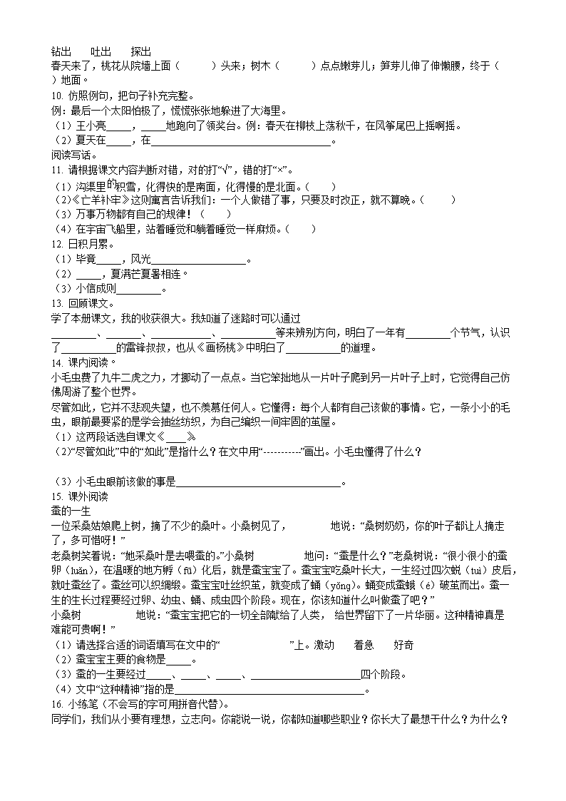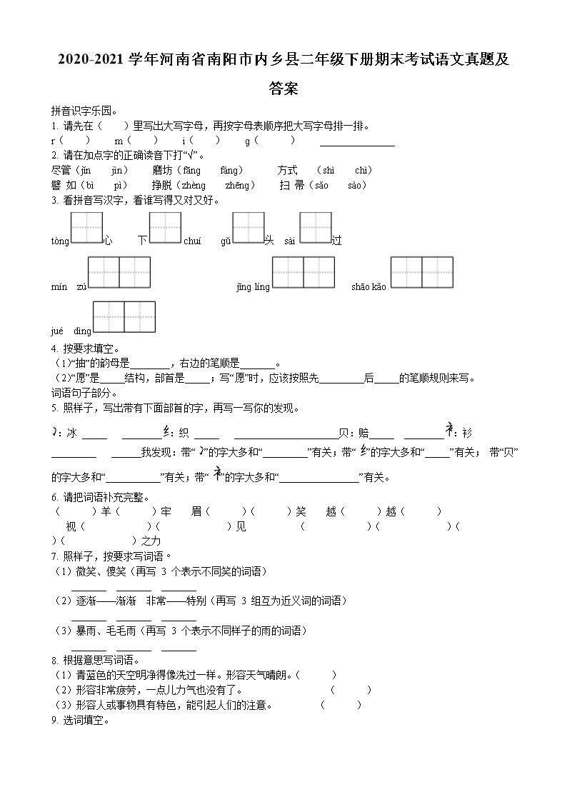 2020-2021学年河南省南阳市内乡县二年级下册期末考试语文真题及答案(Word版)09-01