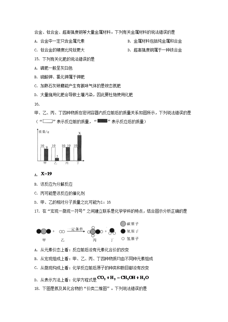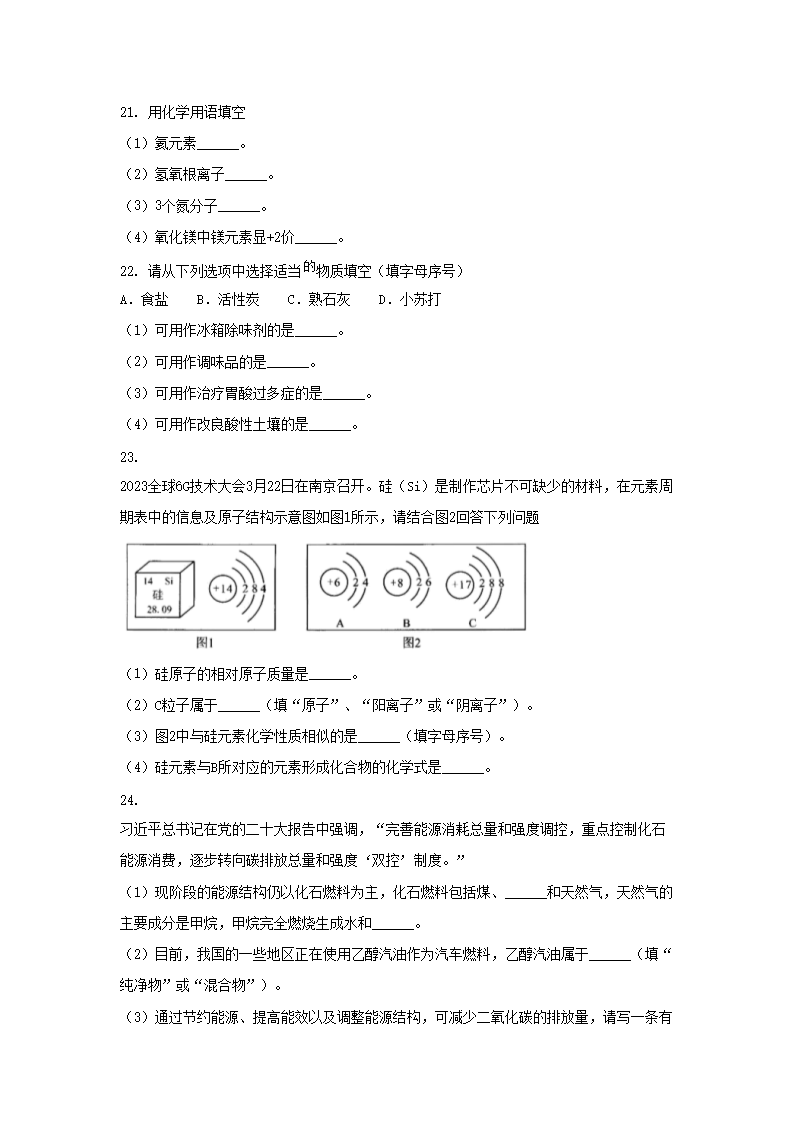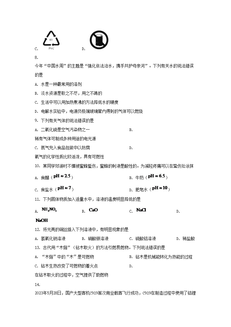 2023年湖南湘潭中考化学真题及答案(Word版)09-12