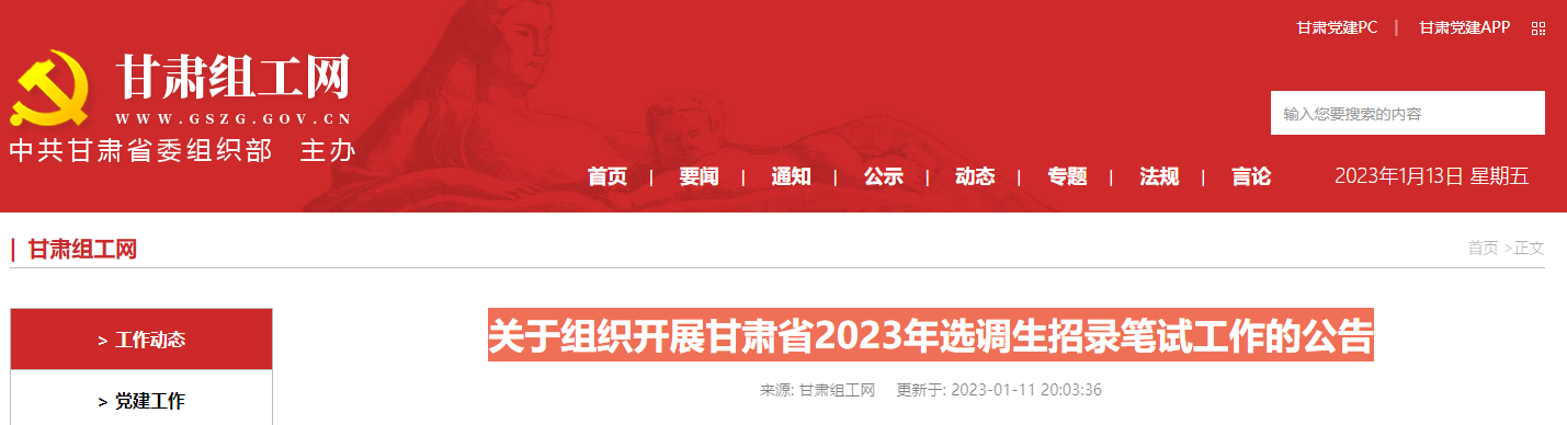 2023年甘肃省选调生招录考试时间:2023年2月11日举行01-16