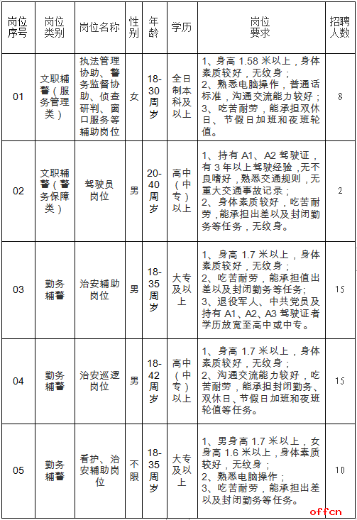 招录工作不设任何代办机构,笔试、专业技能测试、面试不指定教材,招录过程中公安机关不收取任何费用。