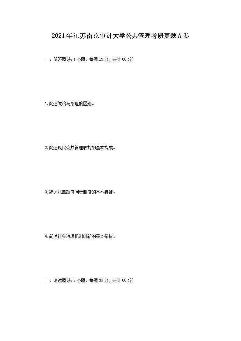 2021年江苏南京审计大学公共管理考研真题A卷(Word版)05-26