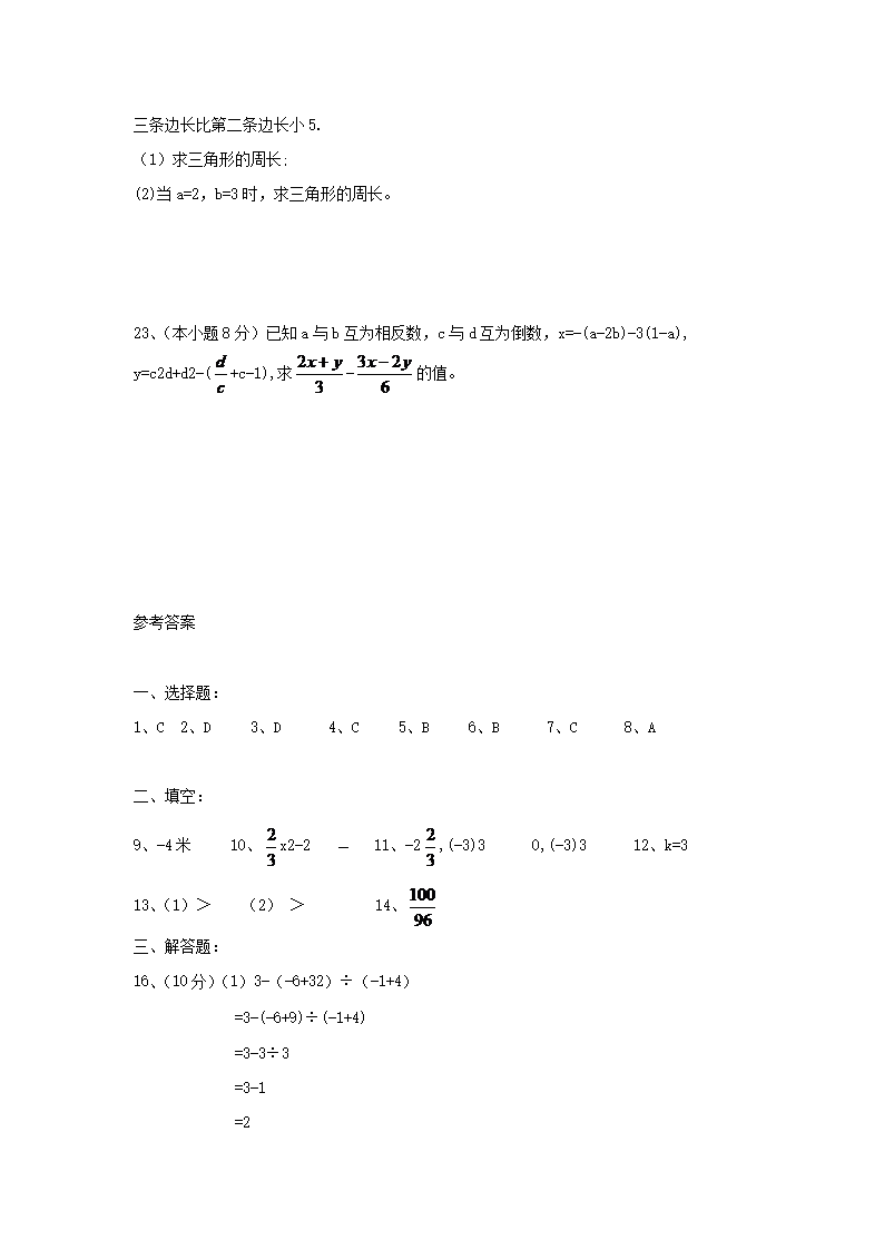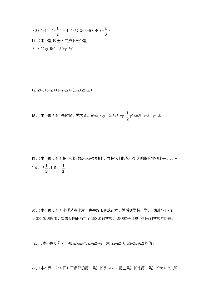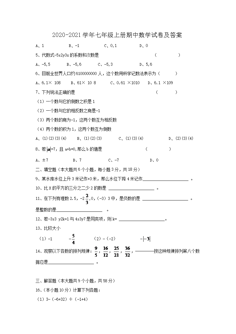 2020-2021学年七年级上册期中数学试卷及答案(Word版)08-31
