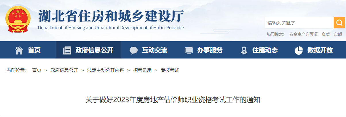 【#房地产评估师考试# #2023年湖北房地产估价师职业资格考试工作通知#】®文档大全网从湖北省住房和城乡建设厅获悉,2023年湖北房地产估价师报名时间:10月10日-14日,考试时间:11月11日-12日,更多事宜请参考阅读《考务通知》,官方公告原文如下:
