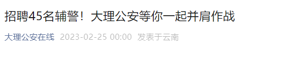 2023年云南大理州公安局招聘留置看护警务辅助人员公告(45人)05-25