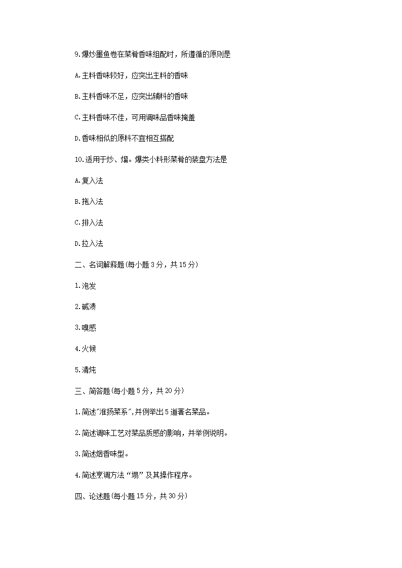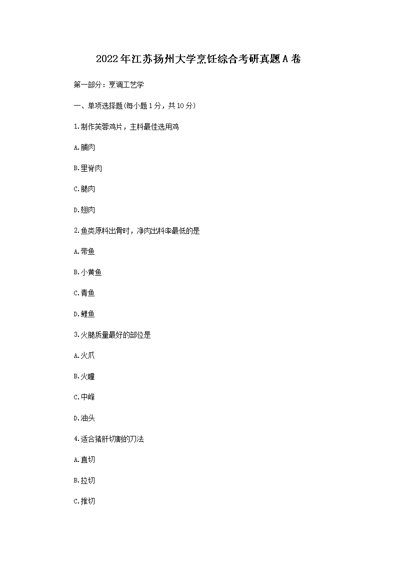 2022年江苏扬州大学烹饪综合考研真题A卷(Word版)09-01