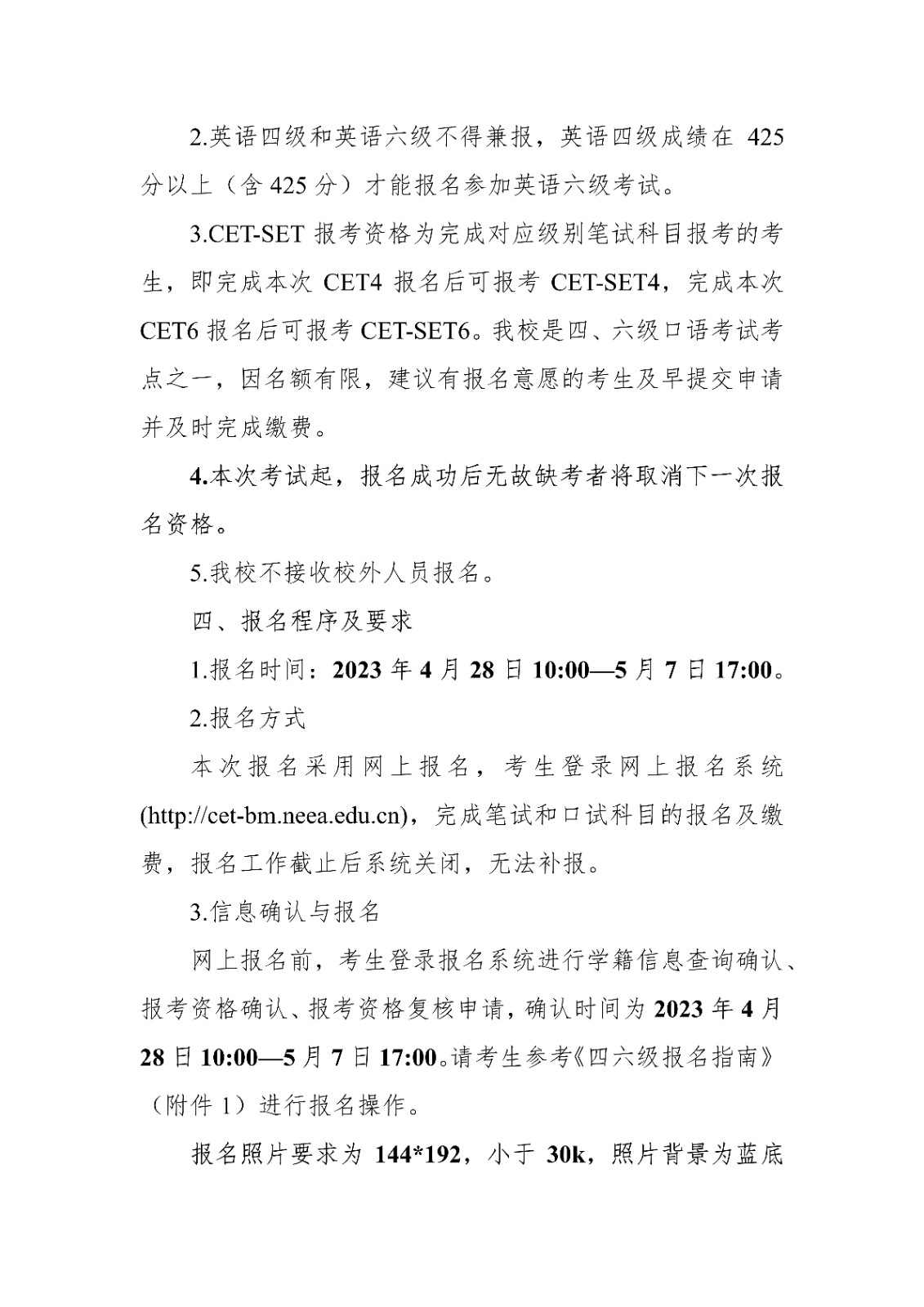 原文标题:关于2023年上半年全国大学英语四、六级考试报名工作的通知