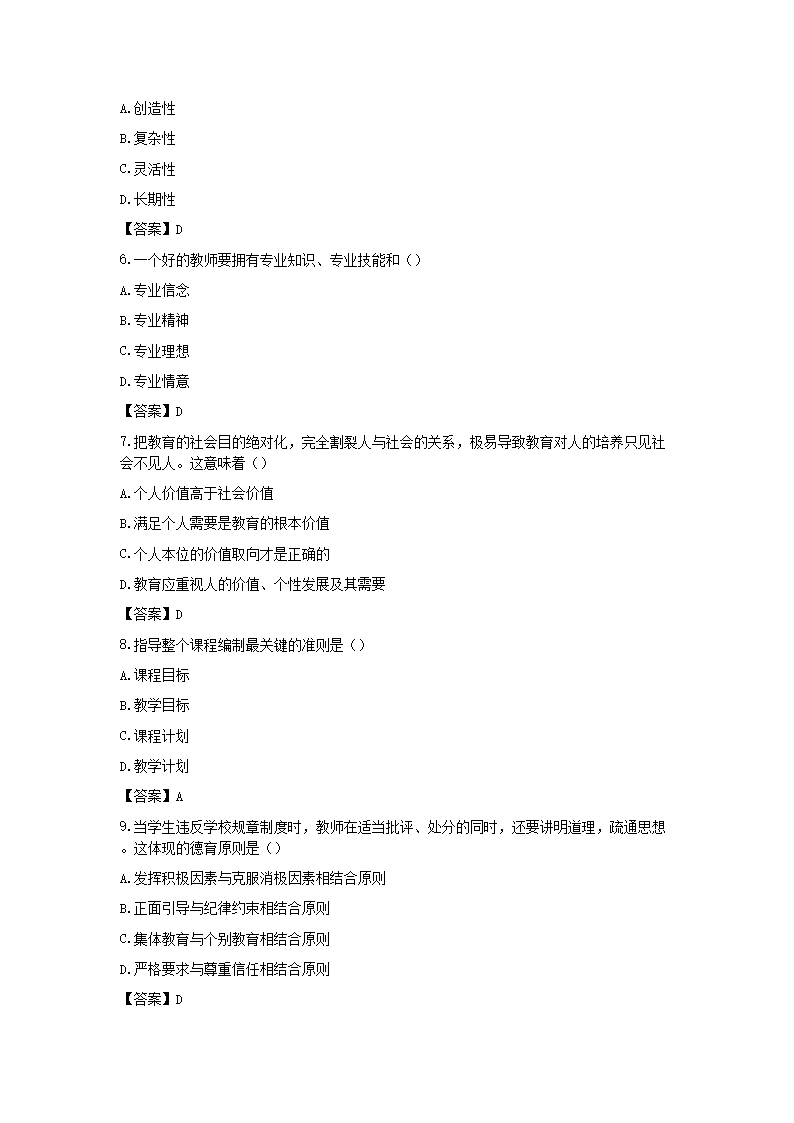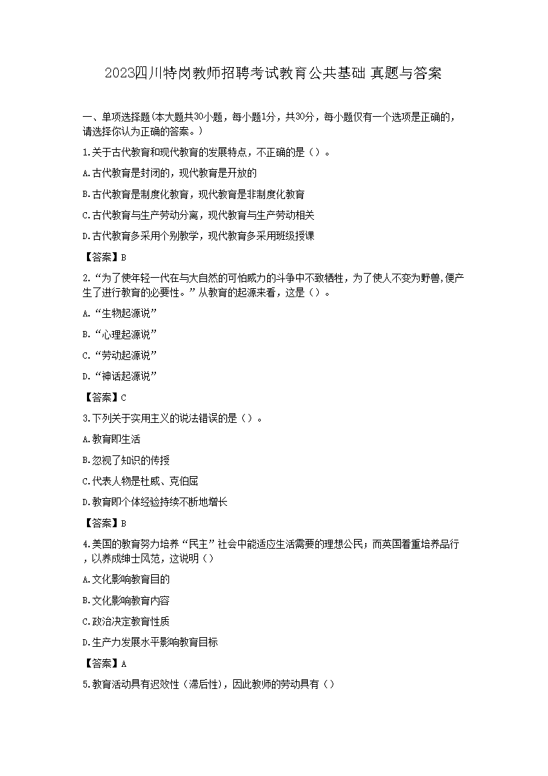 2023四川特岗教师招聘考试教育公共基础真题与答案(Word版)07-29