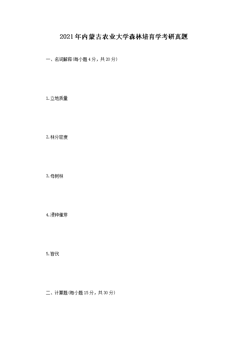 2021年内蒙古农业大学森林培育学考研真题(Word版)07-06