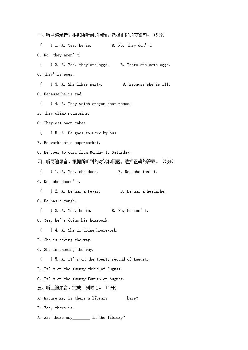 2019-2020学年江苏无锡市锡山区五年级下册期末考试英语试卷及答案(译林版)(Word版)09-21