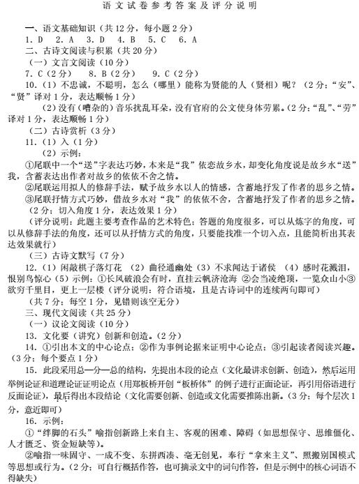2016年东营市中考语文试题(含答案)-2016年湖北潜江中考语文试题答案05-15