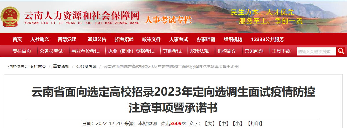 原文标题:云南省面向选定高校招录2023年定向选调生面试疫情防控注意事项暨书