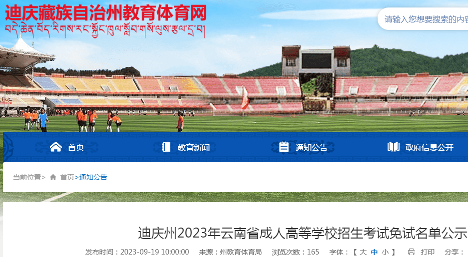 云南迪庆州2023年成人高等学校招生考试免试名单公示09-22
