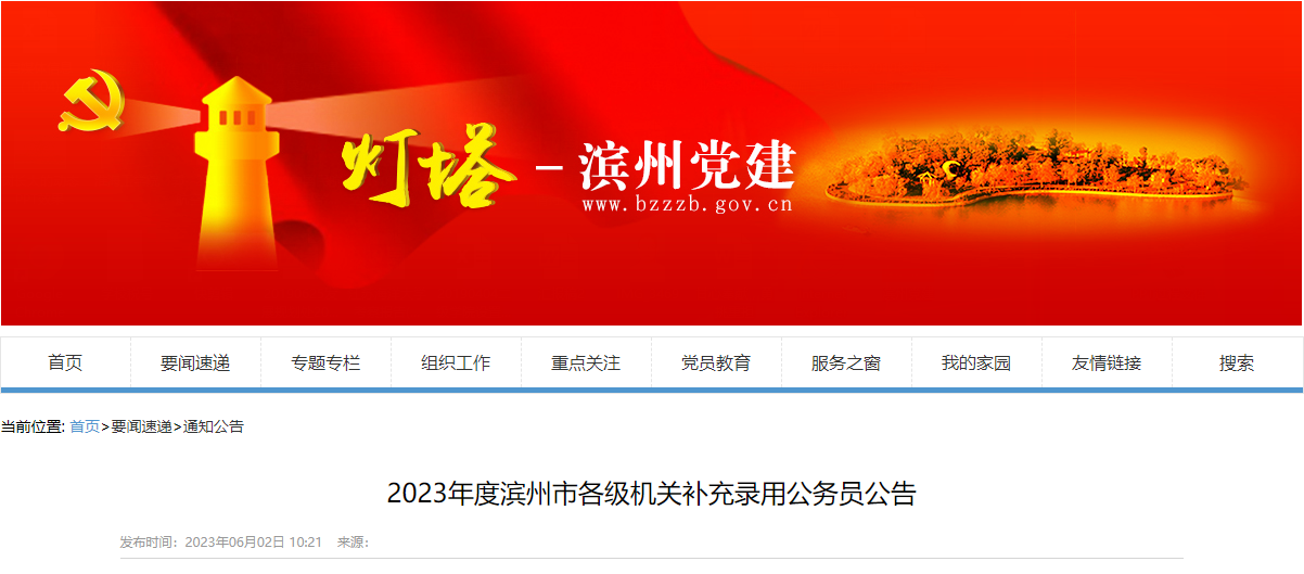 原文标题:2023年度滨州市各级机关补充录用公务员公告