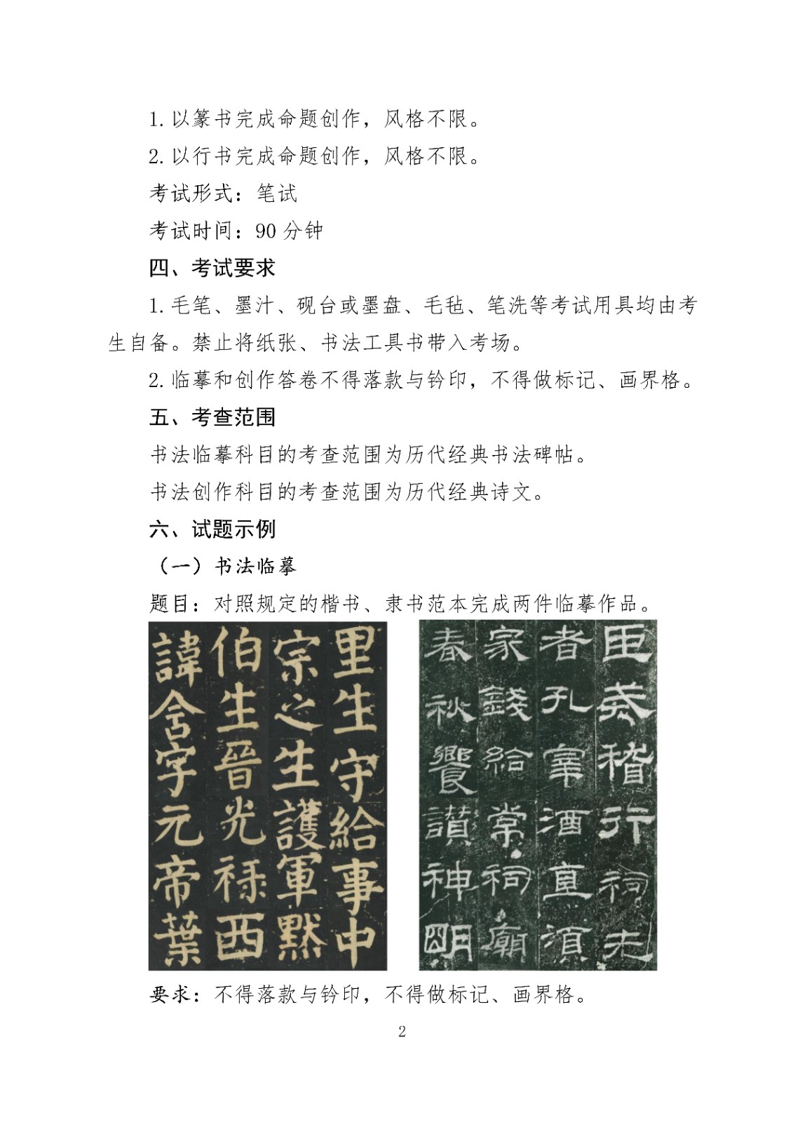 考试内容:分别对照楷书、隶书两种不同字体范本进行临摹(30字左右)。