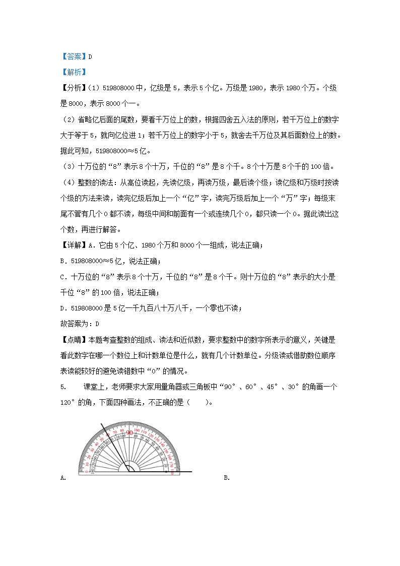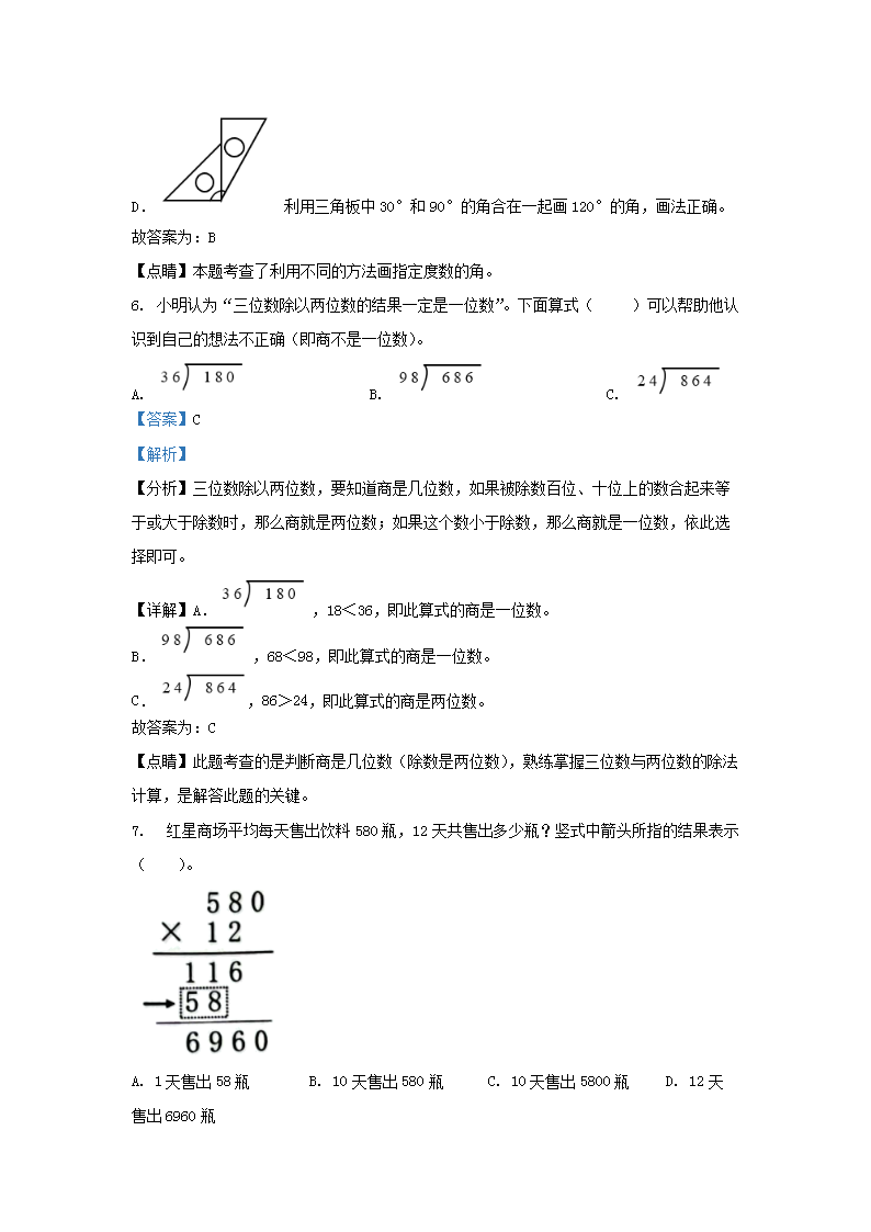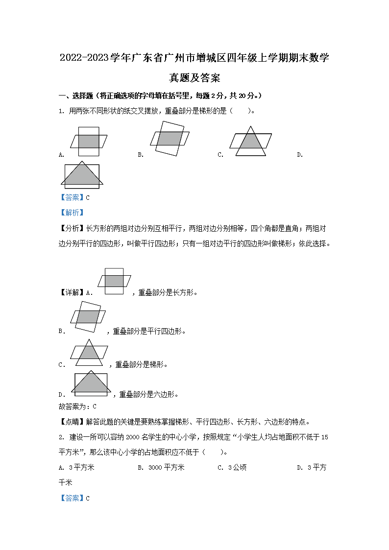 2022-2023学年广东省广州市增城区四年级上学期期末数学真题及答案(Word版)10-19